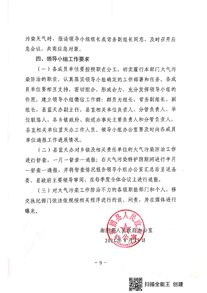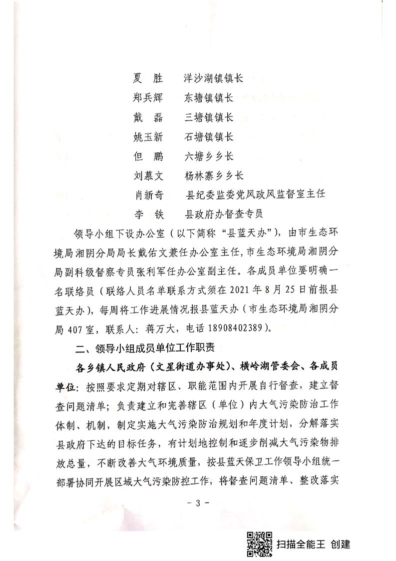 关于成立湘阴县蓝天保卫战工作领导小组的通知