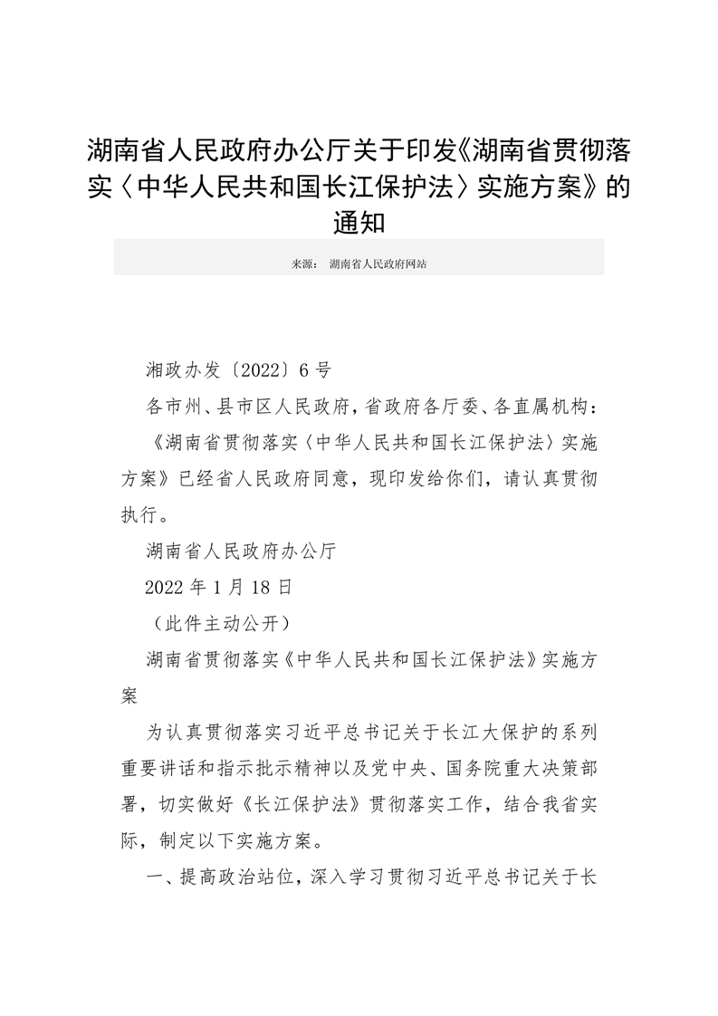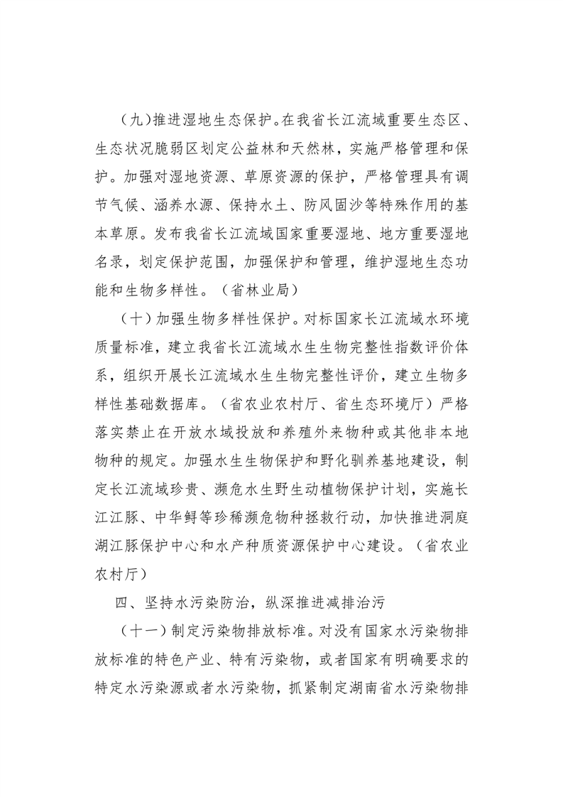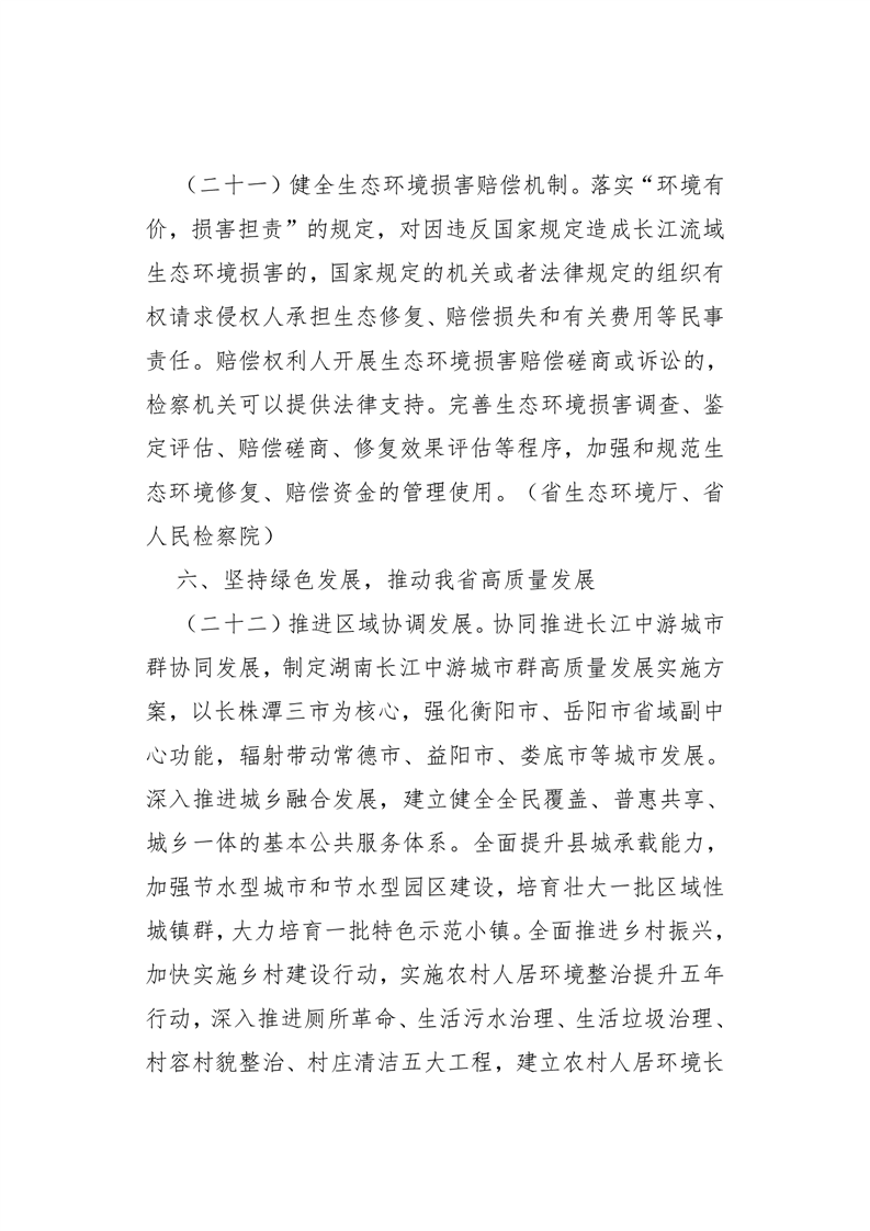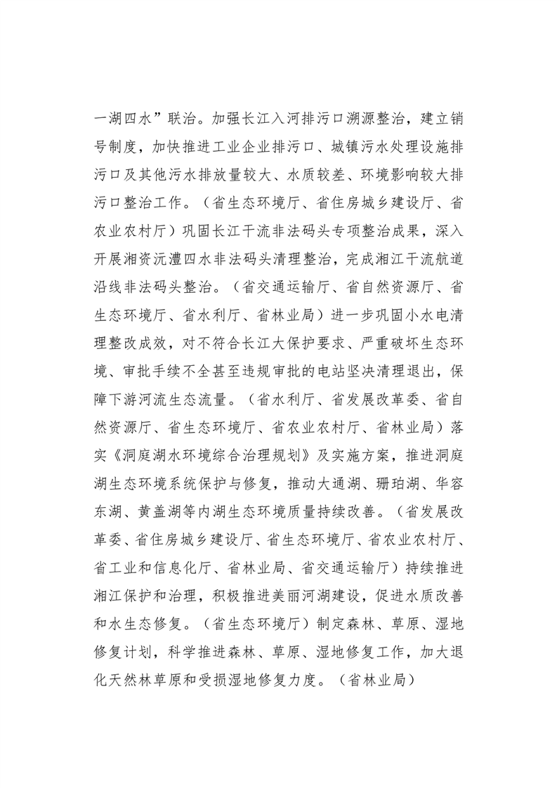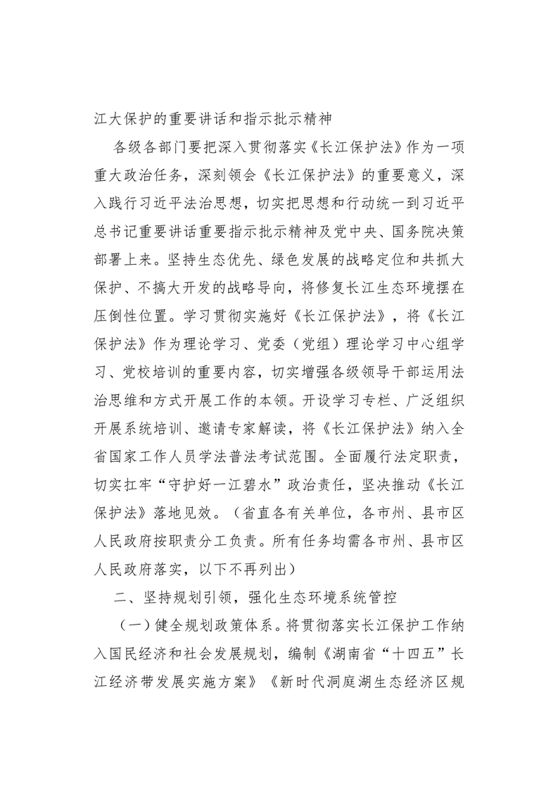 湖南省人民政府办公厅关于印发《湖南省贯彻落实〈中华人民共和国长江保护法〉实施方案》的通知