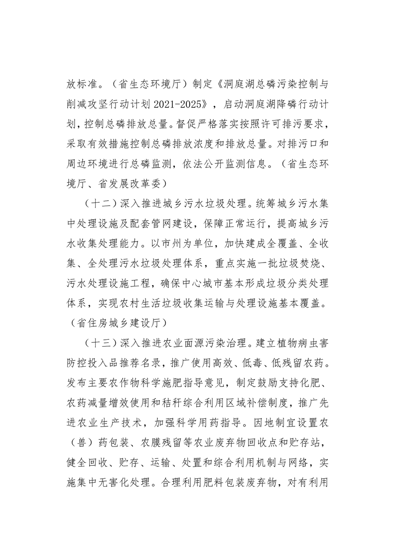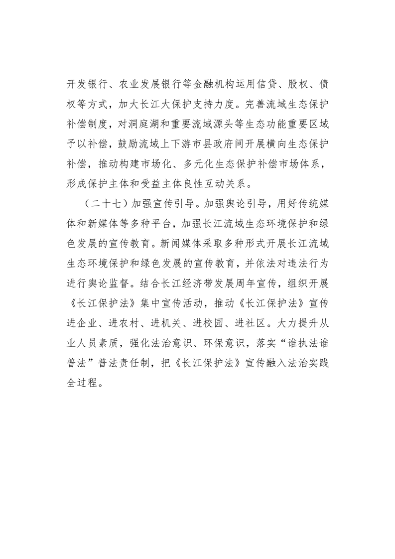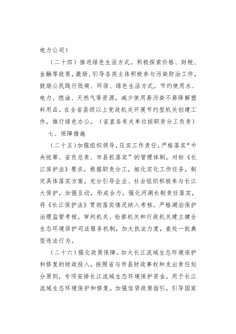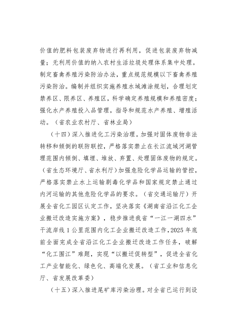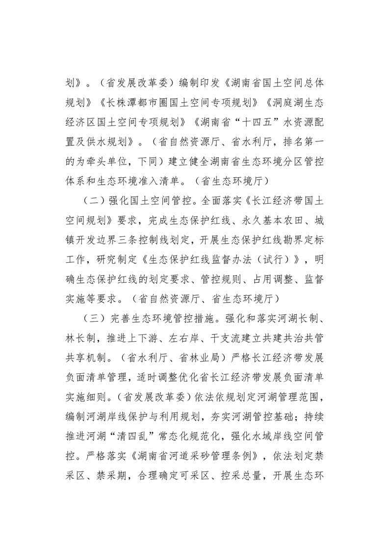 湖南省人民政府办公厅关于印发《湖南省贯彻落实〈中华人民共和国长江保护法〉实施方案》的通知