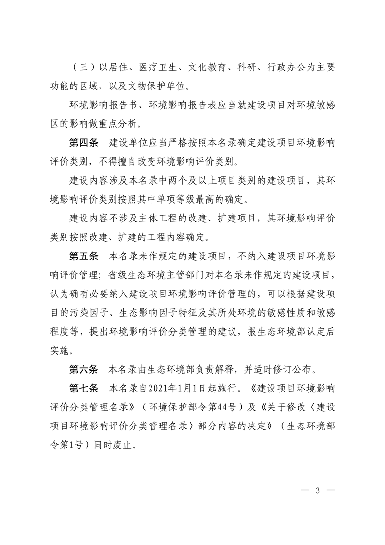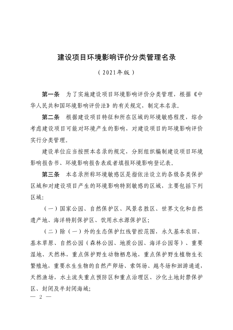 建设项目环境影响评价分类管理名录(2021年版)