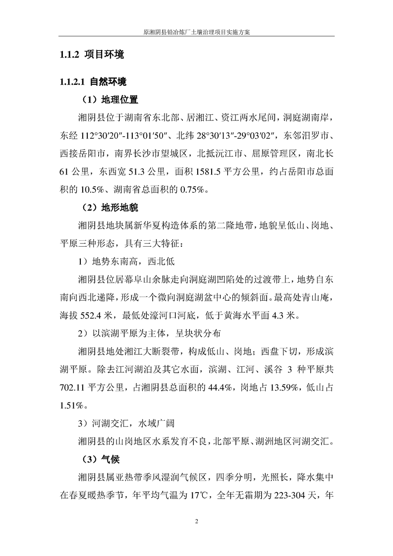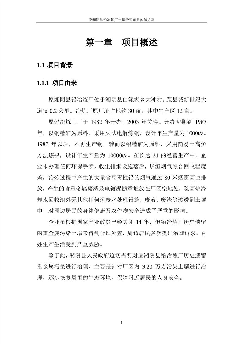 原湘阴县铅冶炼厂土壤治理项目实施方案