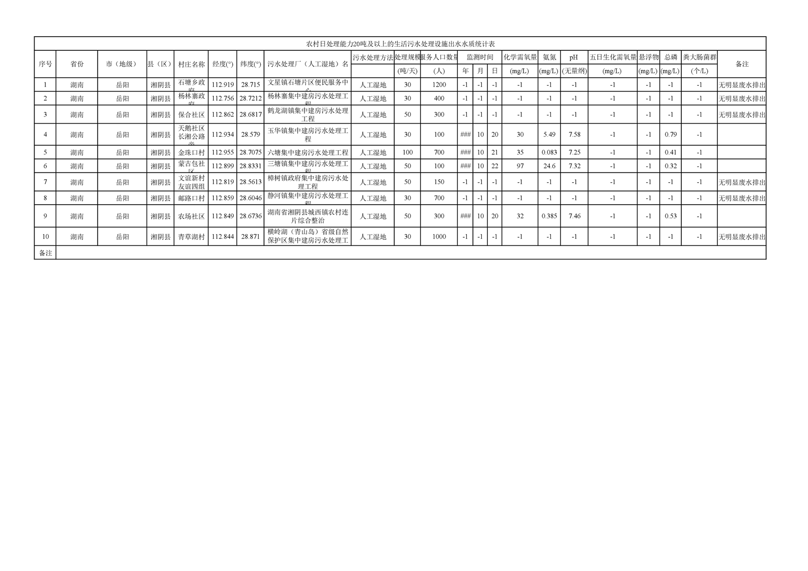 2020年4季度-农村日处理能力20吨及以上的生活污水处理设施出水水质统计表