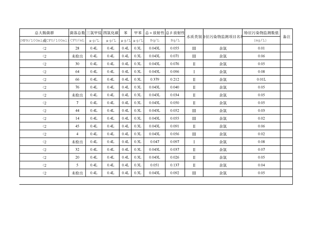 湘阴县2021年1季度--农村万人千吨地下水饮用水源地监测结果统计表