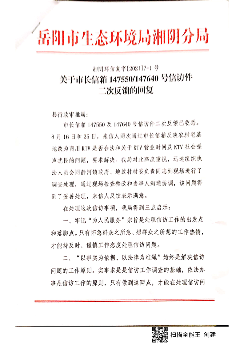关于市长信箱147550/147640号信访件二次反馈的回复