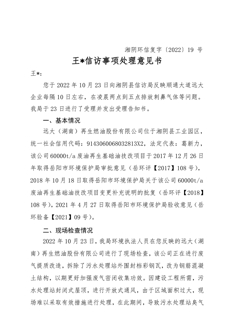 王*信访事项处理意见书