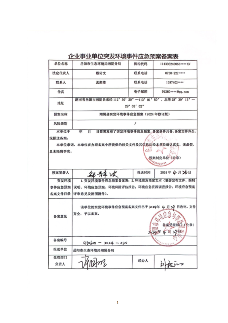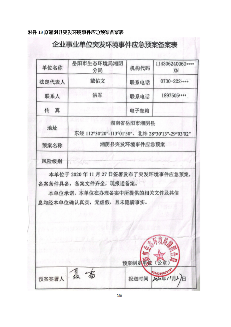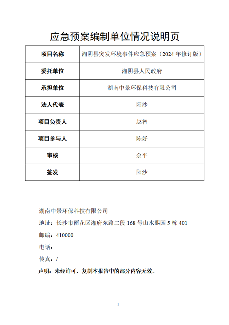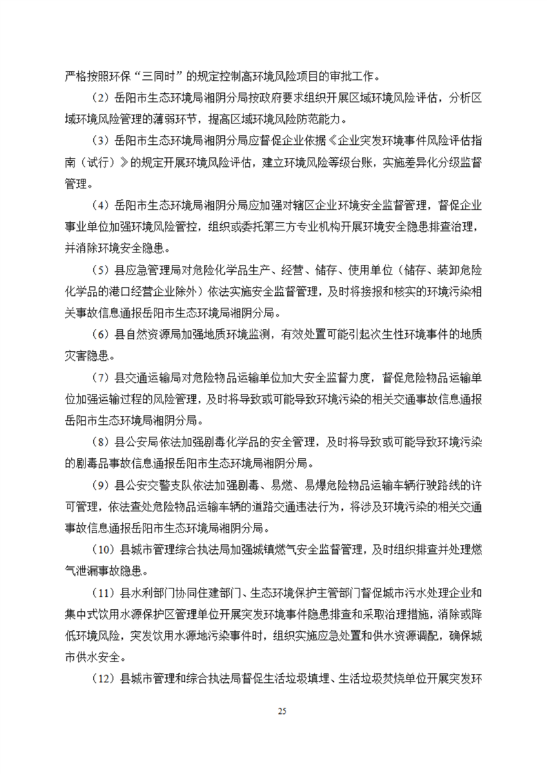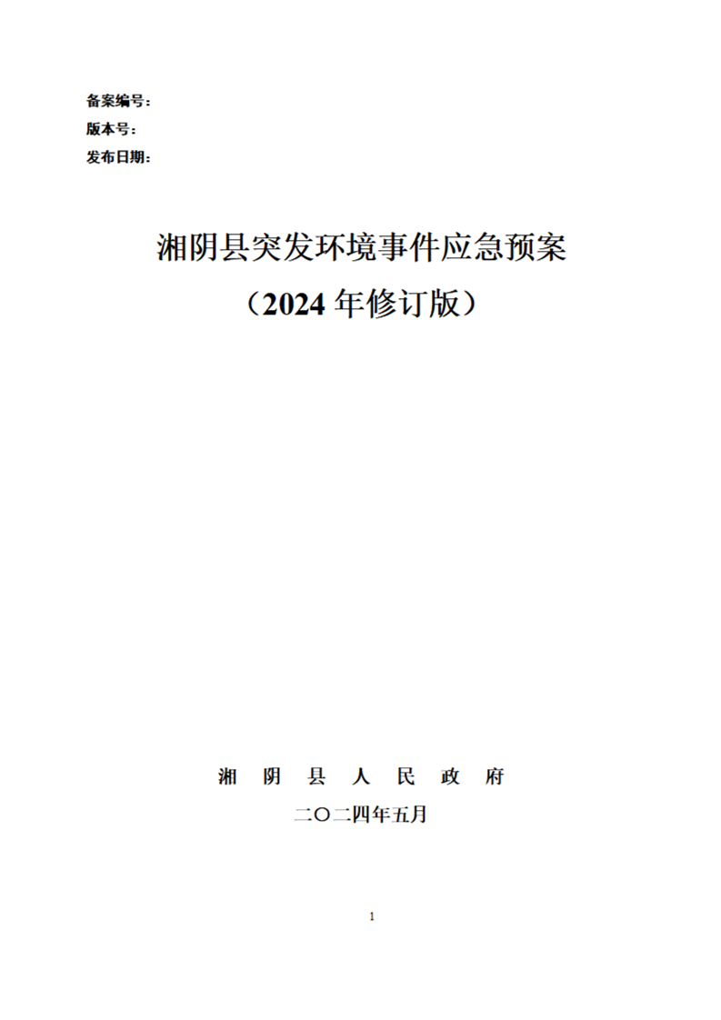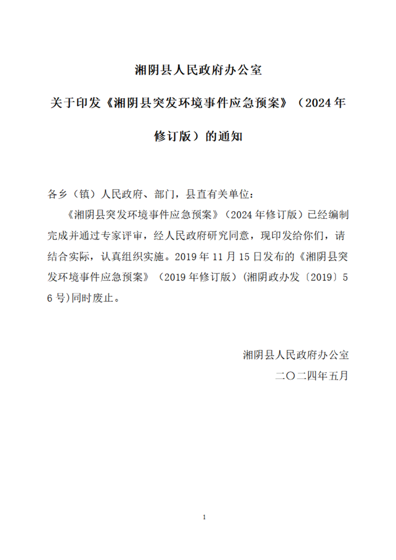 湘阴县突发环境事件应急预案(2024修改版5.10)