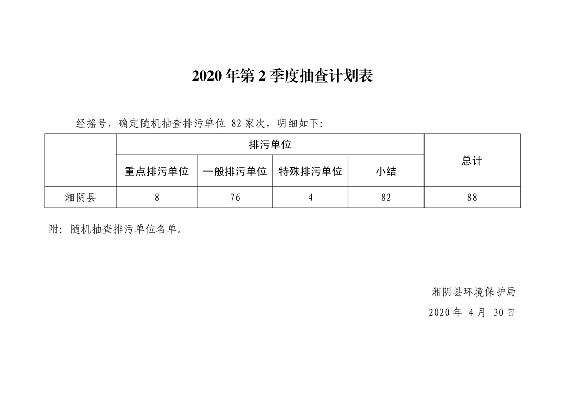 2020年第2季度抽查计划表