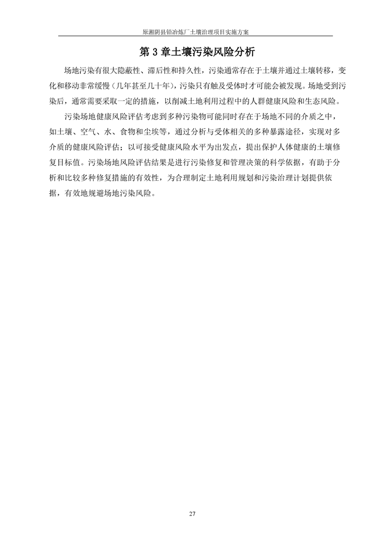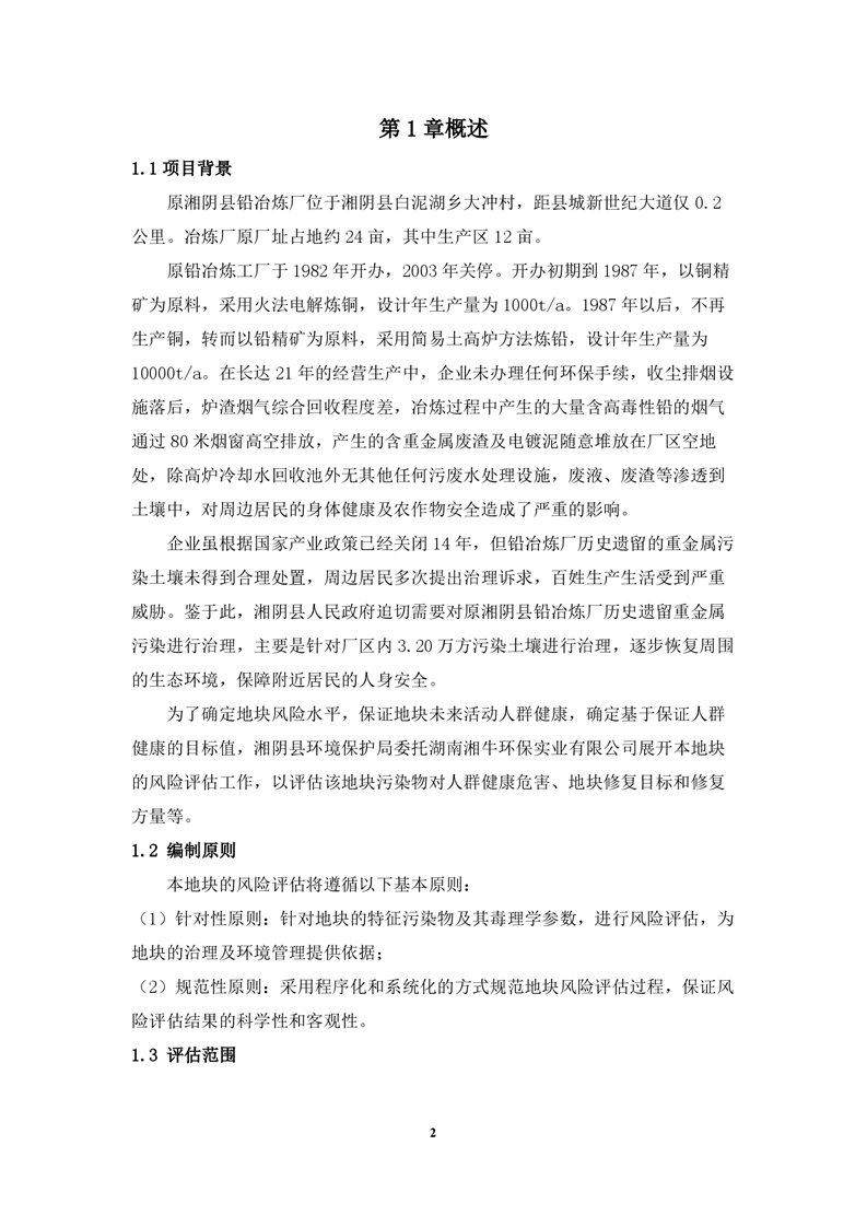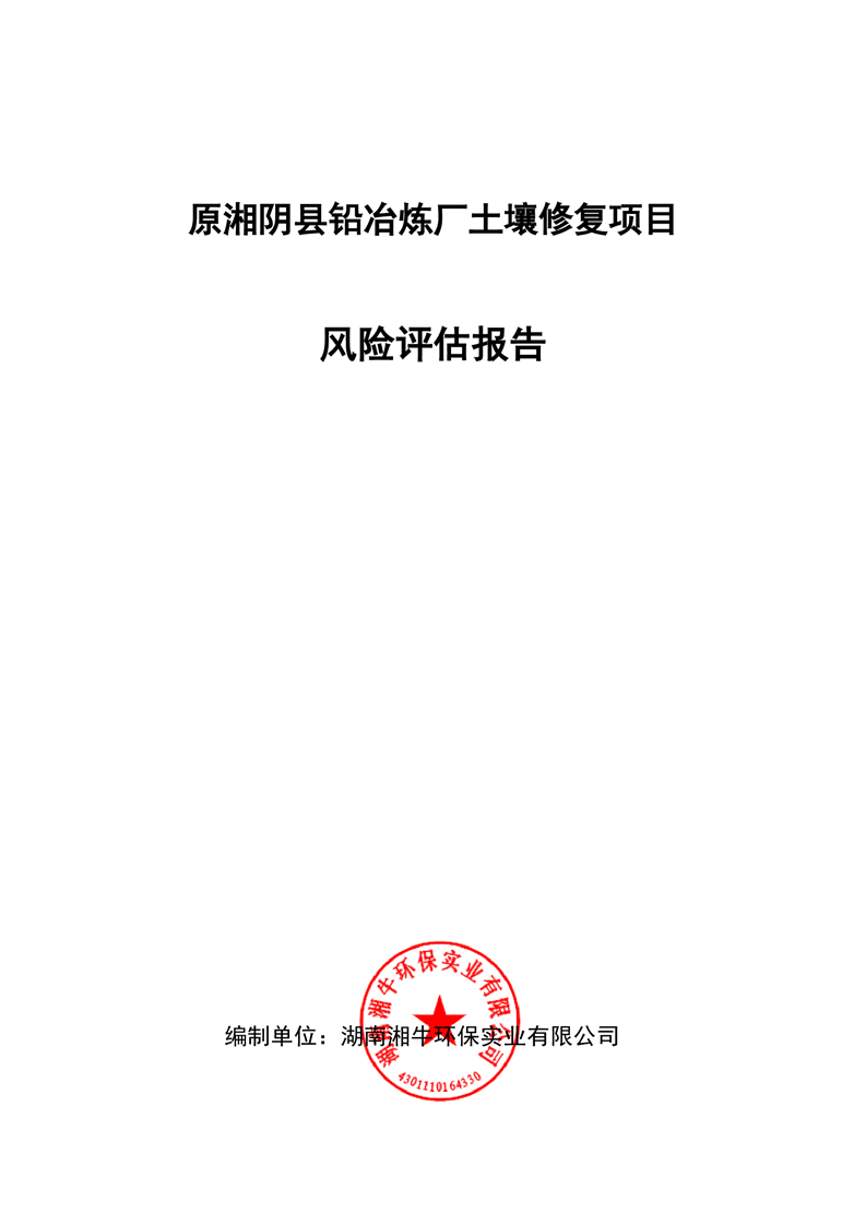 原湘阴县铅冶炼厂土壤修复项目风险评估报告