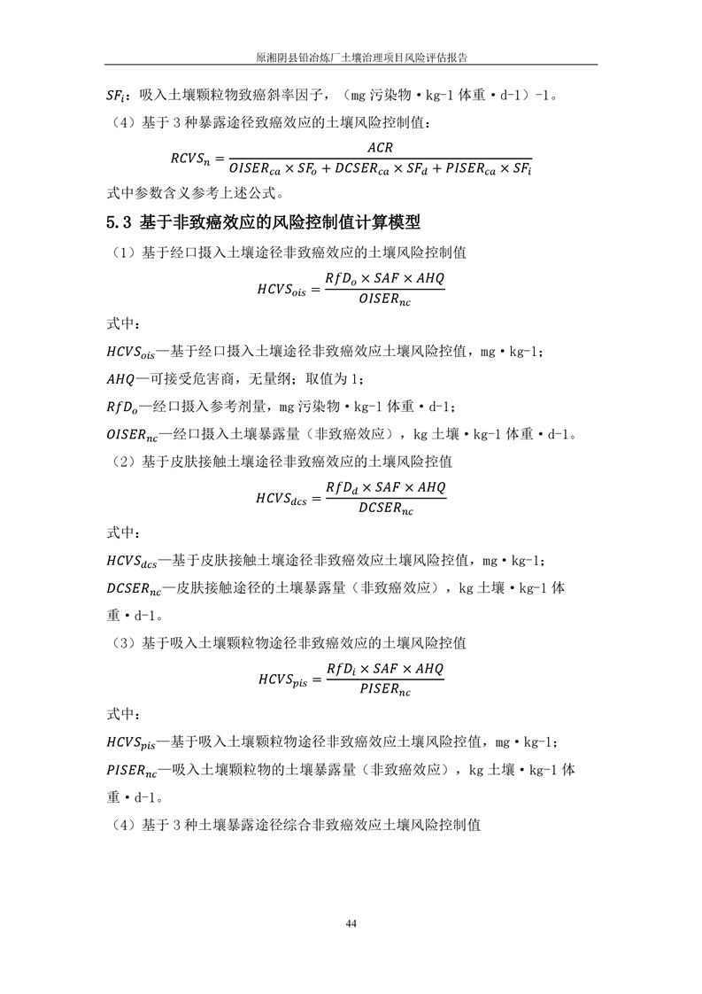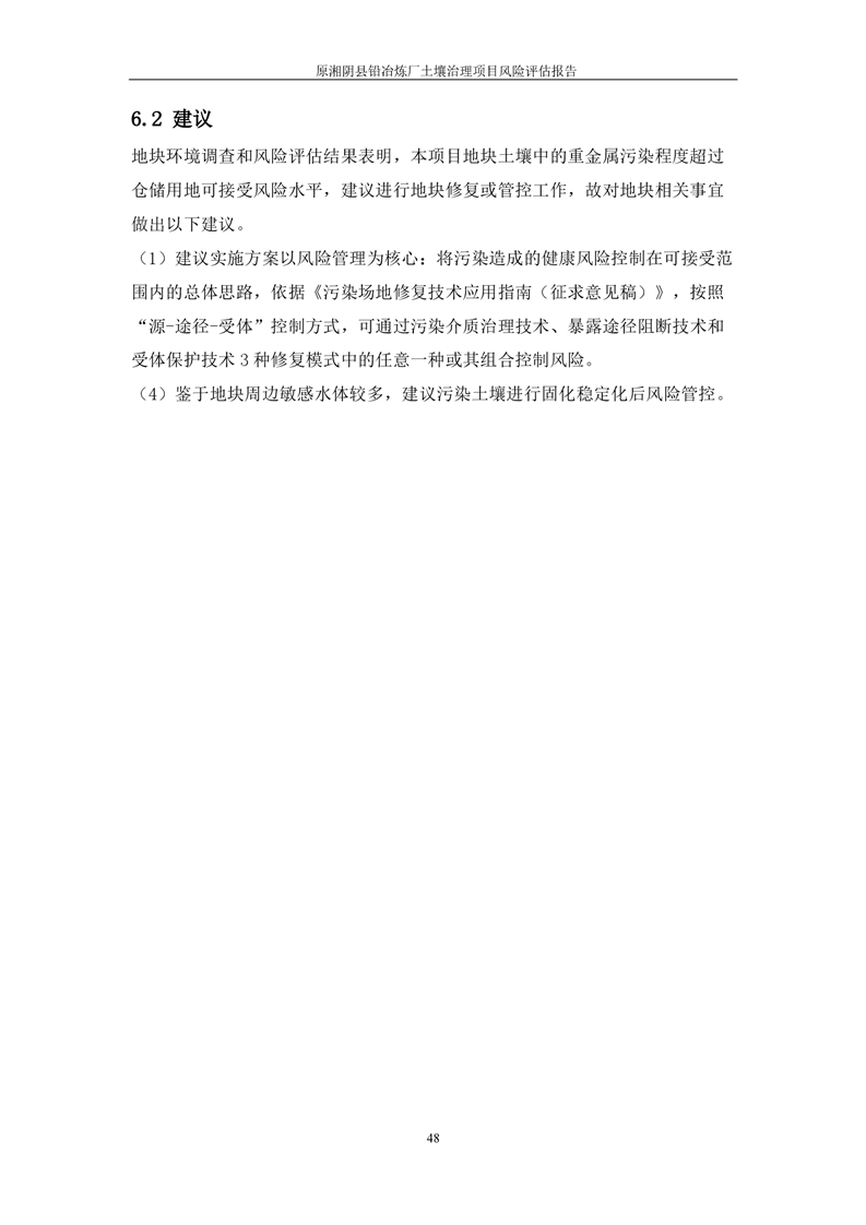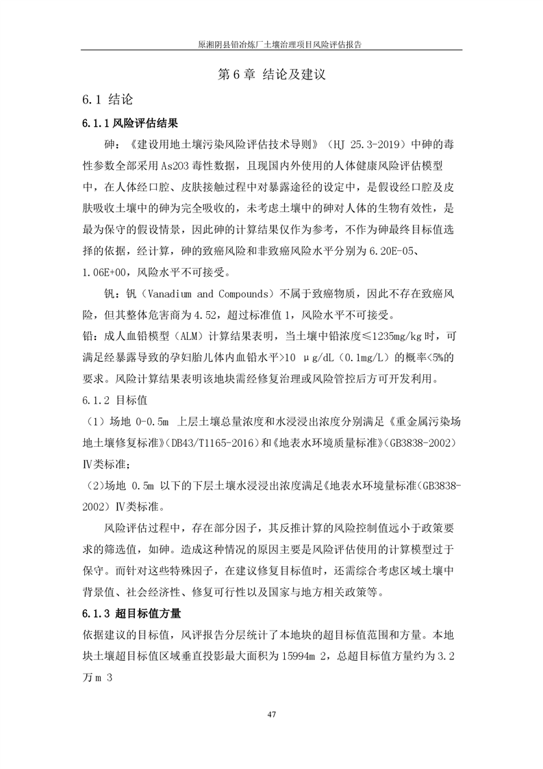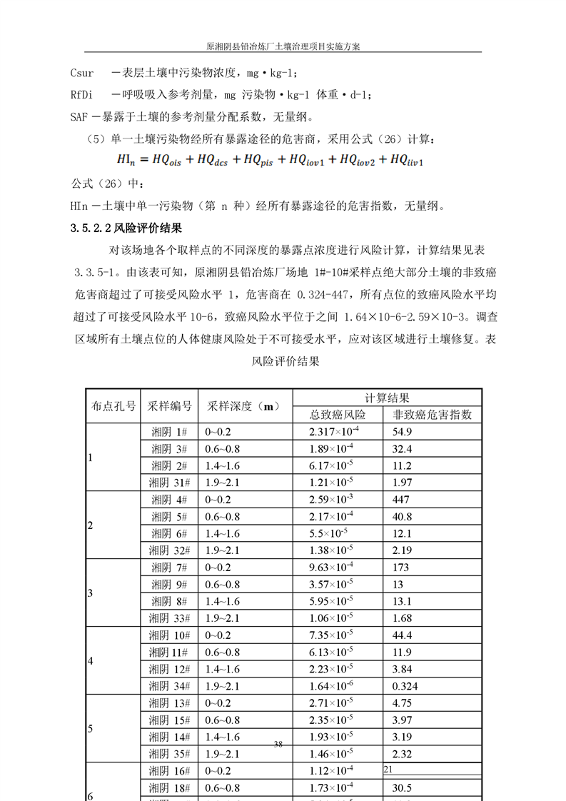 原湘阴县铅冶炼厂土壤修复项目风险评估报告