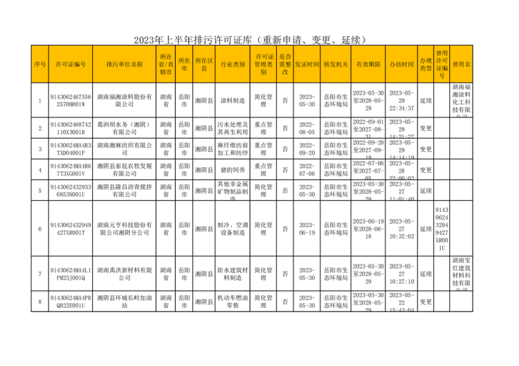 2023年上半年排污许可证库(重新申请、变更、延续)