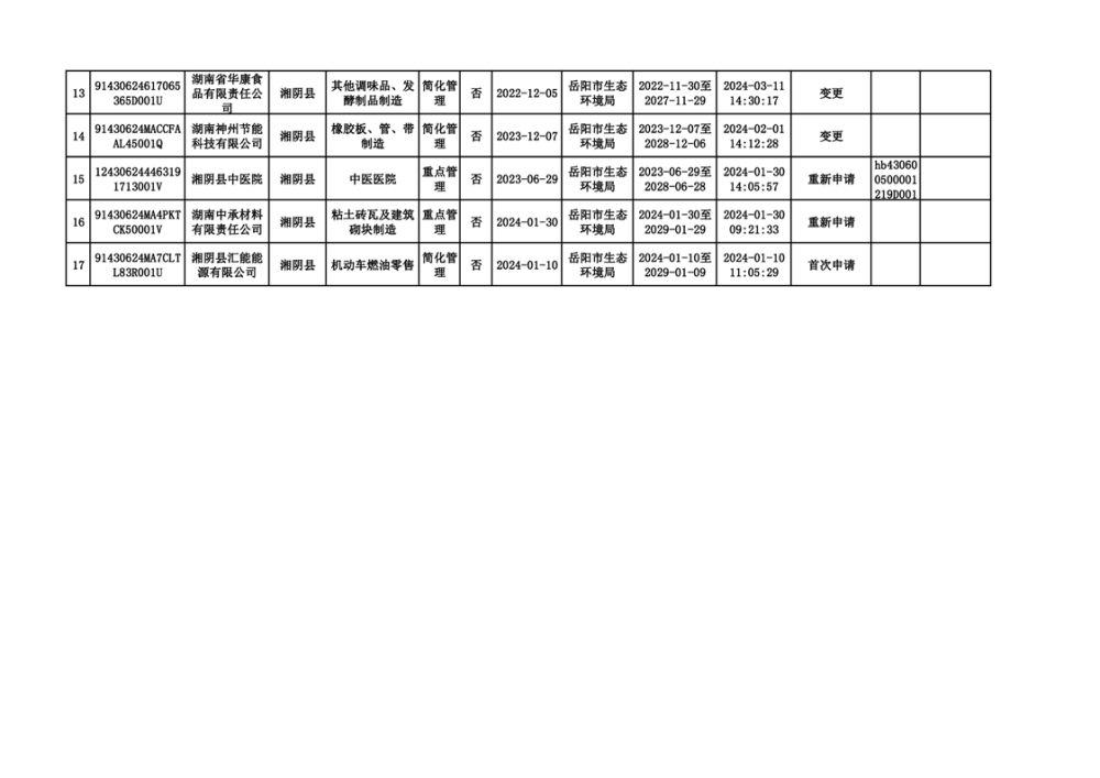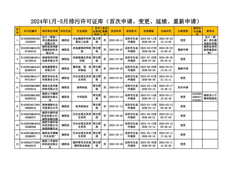 2024年1月-5月排污许可证库(首次申请、变更、延续、重新申请)