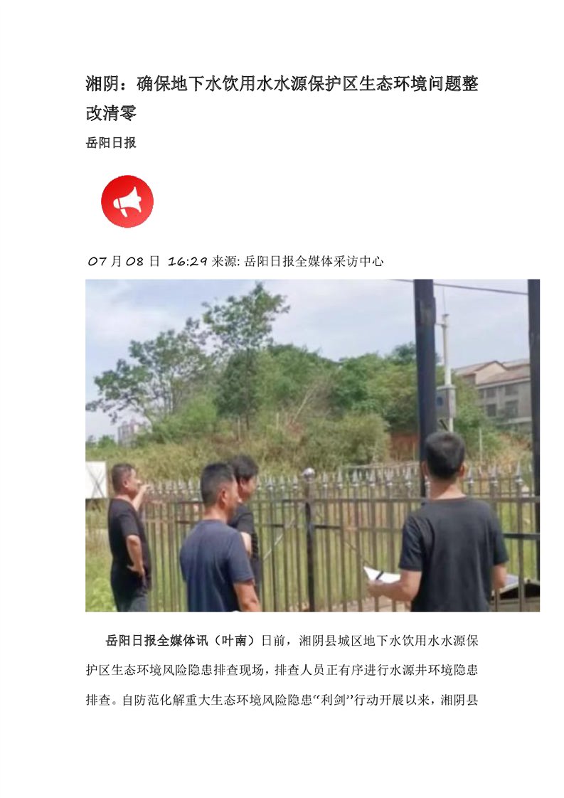 湘阴:确保地下水饮用水水源保护区生态环境问题整改清零