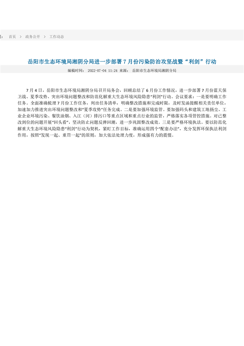 岳阳市生态环境局湘阴分局进一步部署7月份污染防治攻坚战暨“利剑”行动
