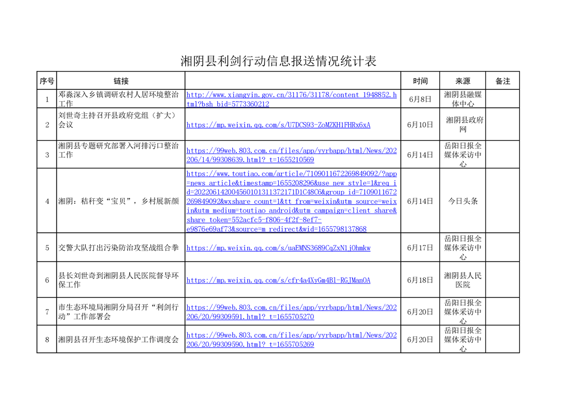 湘阴县利剑行动信息报送情况统计表