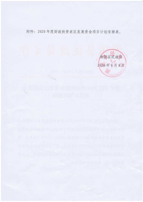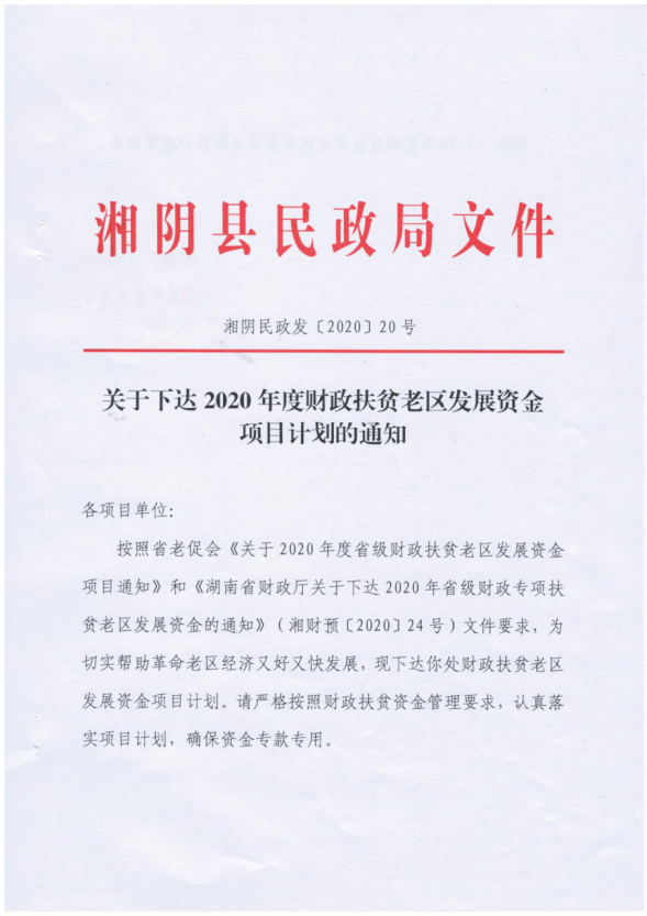 关于下达2020年度财政扶贫老区发展资金项目计划的通知