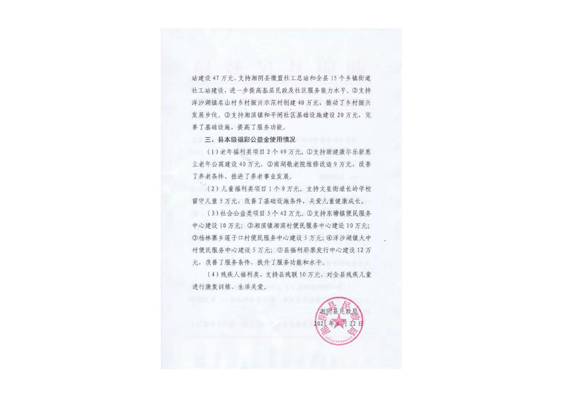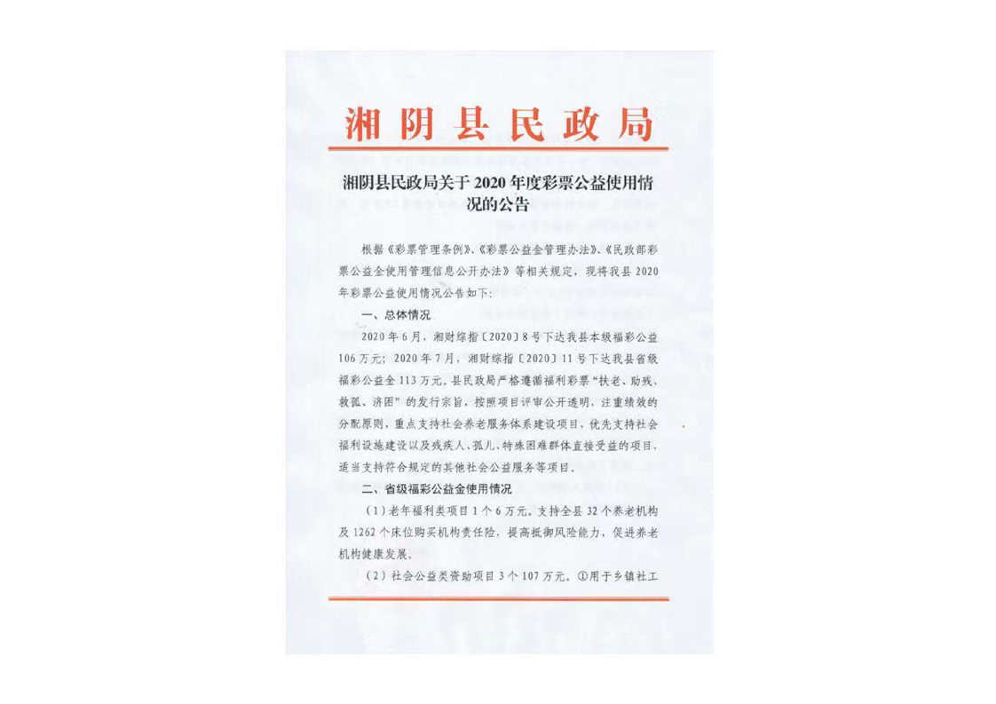 湘阴县民政局关于2020年度公益使用情况的公告