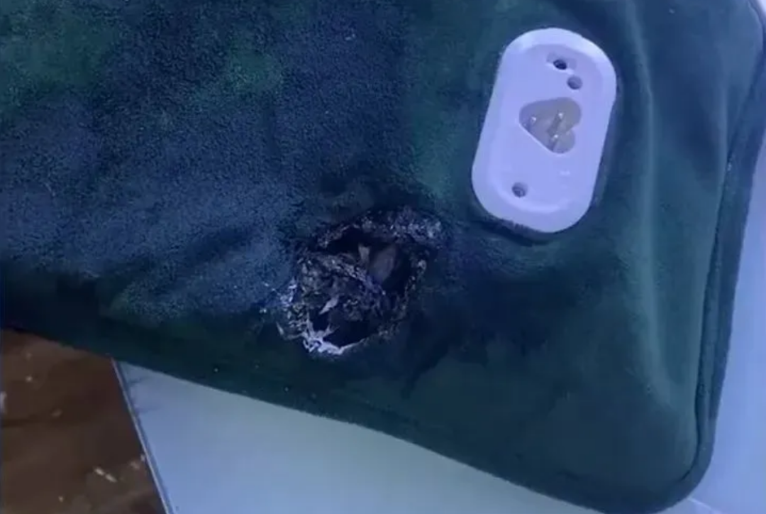 刘女士表示,刚充上一会儿就闻到味道,还伴有滋滋的声音回头一看,暖水袋上火星冒得很旺,家里被熏得都是烟,所幸断电后火就自己灭了没有造成太大损失。