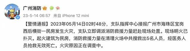 5月14日广东省广州市海珠区宝岗西后横街一居民楼发生火灾接警后当地消防迅速赶赴现场展开救援