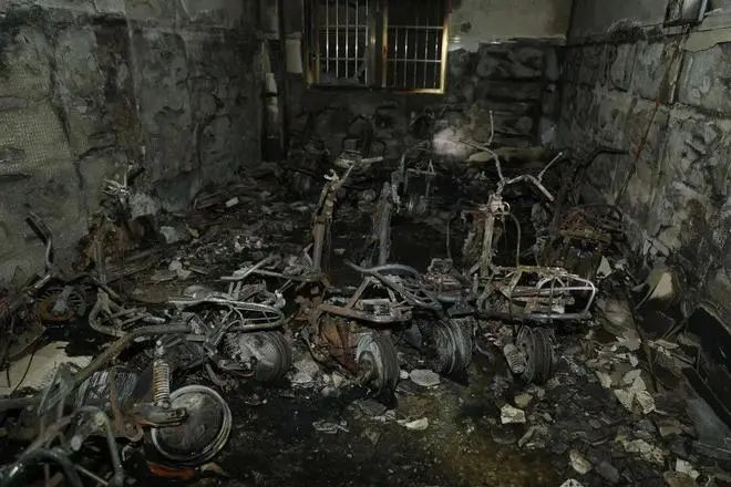 河南省驻马店市驿城区老街办事处飞龙小区西区居民楼发生一起火灾。初步认定起火原因为小区居民违规在楼道内飞线充电造成火灾,楼内有2名住户被熏并烧伤、9辆电动车被烧毁。