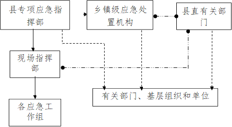 (2)事故已经发生,但不需要启动县级应急响应时,由县专项应急指挥部可派出工作组对现场进行督导,并做好事故扩大、升级后需开展县级响应的准备。