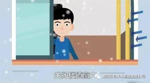 夜晚应关好阳台、厨房、卫生间及朝北房间的门窗,保证家中室内温度在0℃以上。水表装在楼梯间的用户,要把楼梯间的窗户及管道井门关闭。