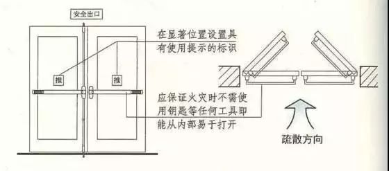 疏散门的开启方向有讲究。符合规范要求的宾馆饭店建筑,房间门距离外部出口或楼梯间的最大距离都会控制在一定范围内,在此疏散途中的门和楼梯间的门都是开向逃生方向的,只要向外用力,就可以打开。