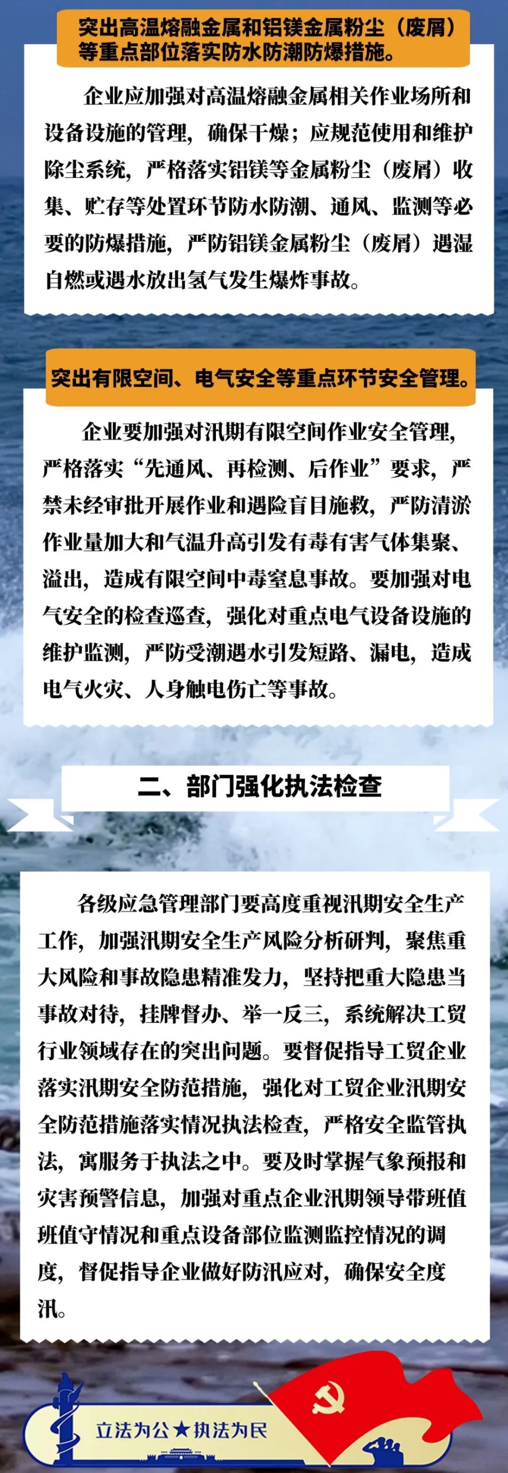 2021年7月20日4时左右,河南登封登电集团铝合金有限公司临近的颍河水位暴涨并超警戒水位。因河道水位暴涨致围墙倒塌、厂区进水,该公司立即停电并组织人员安全撤离。6时左右,发生爆炸。后经调查,原因是洪水漫延到厂区铝合金槽内的高温溶液中引发爆炸。