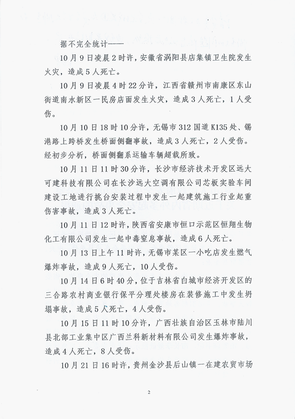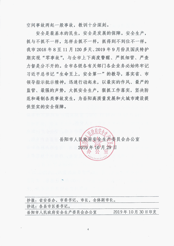 岳阳市安委办《关于近期省内外多起安全事故通报》的紧急通知