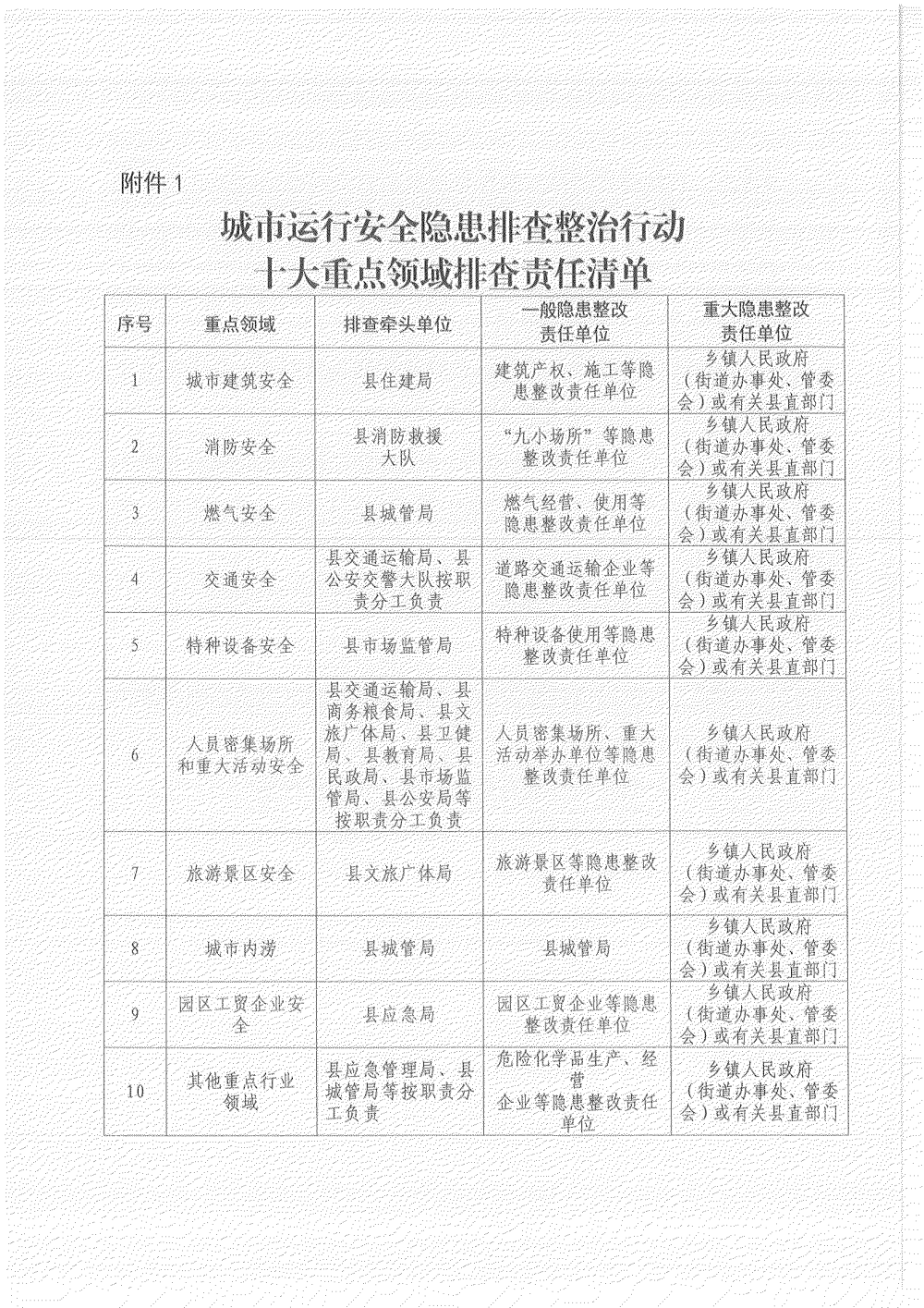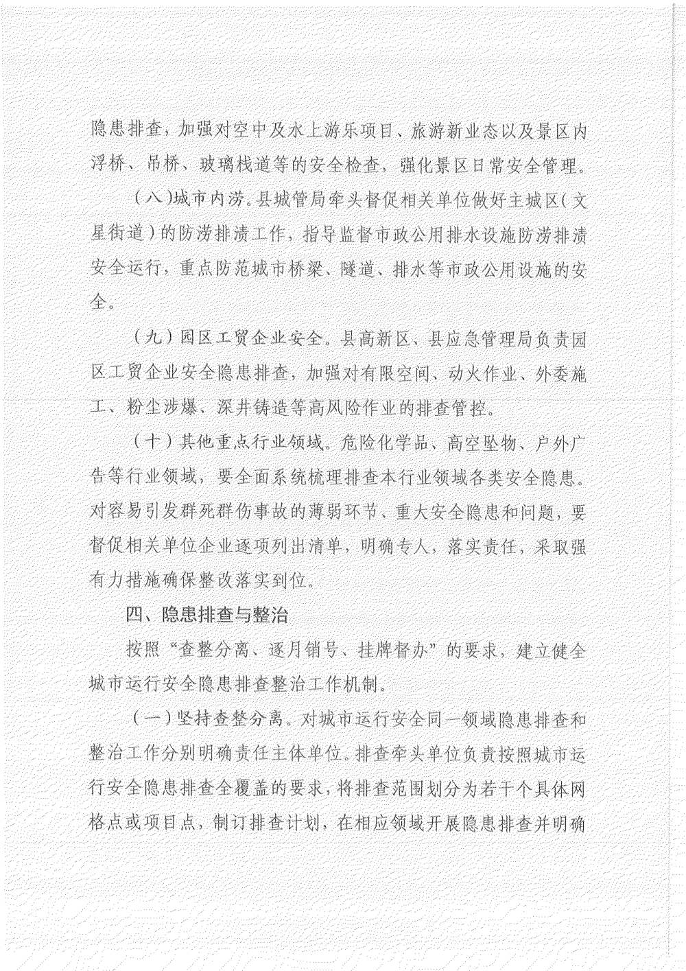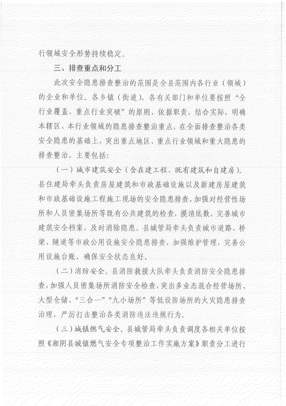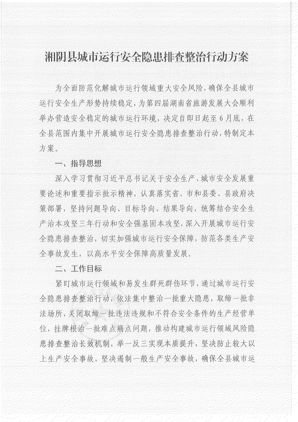 关于印发《湘阴县城市运行安全隐患排查整治行动方案》的通知