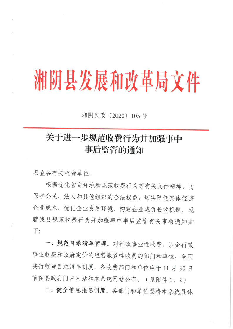 关于进一步规范收费行为并加强事中事后监管的通知
