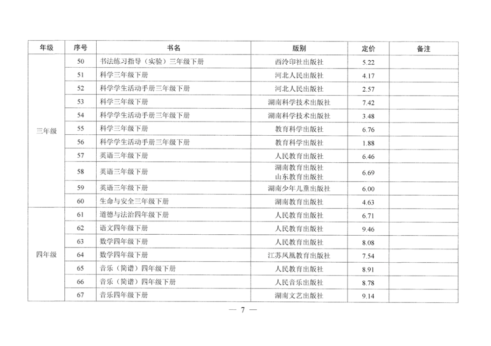 湖南省发展和改革委员会 湖南省新闻出版局 湘发改价费〔2025〕37号 关于核定湖南省2025年春季中小学教科书等价格的通知
