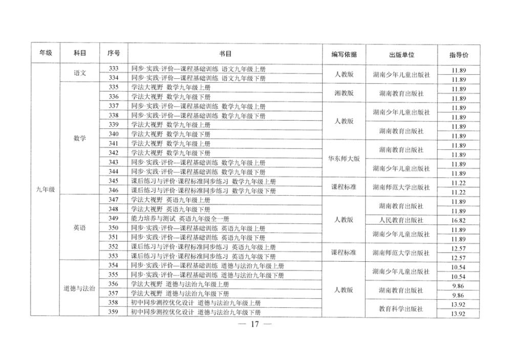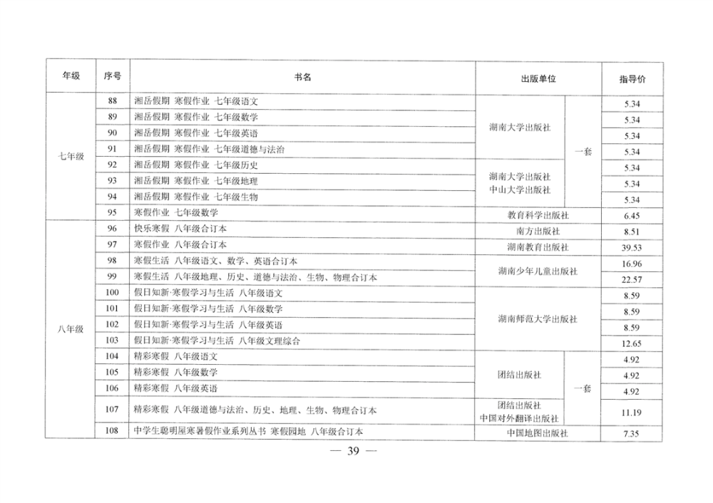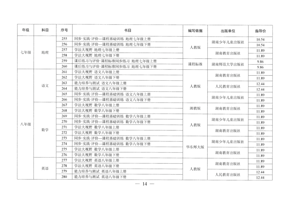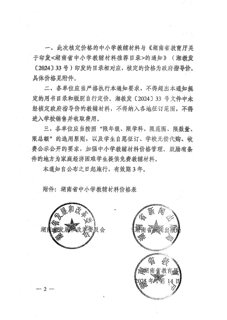 湖南省发展和改革委员会 湖南省新闻出版局 湖南省教育厅 湘发改价费〔2025〕23号 关于核定湖南省中小学教辅材料价格的通知