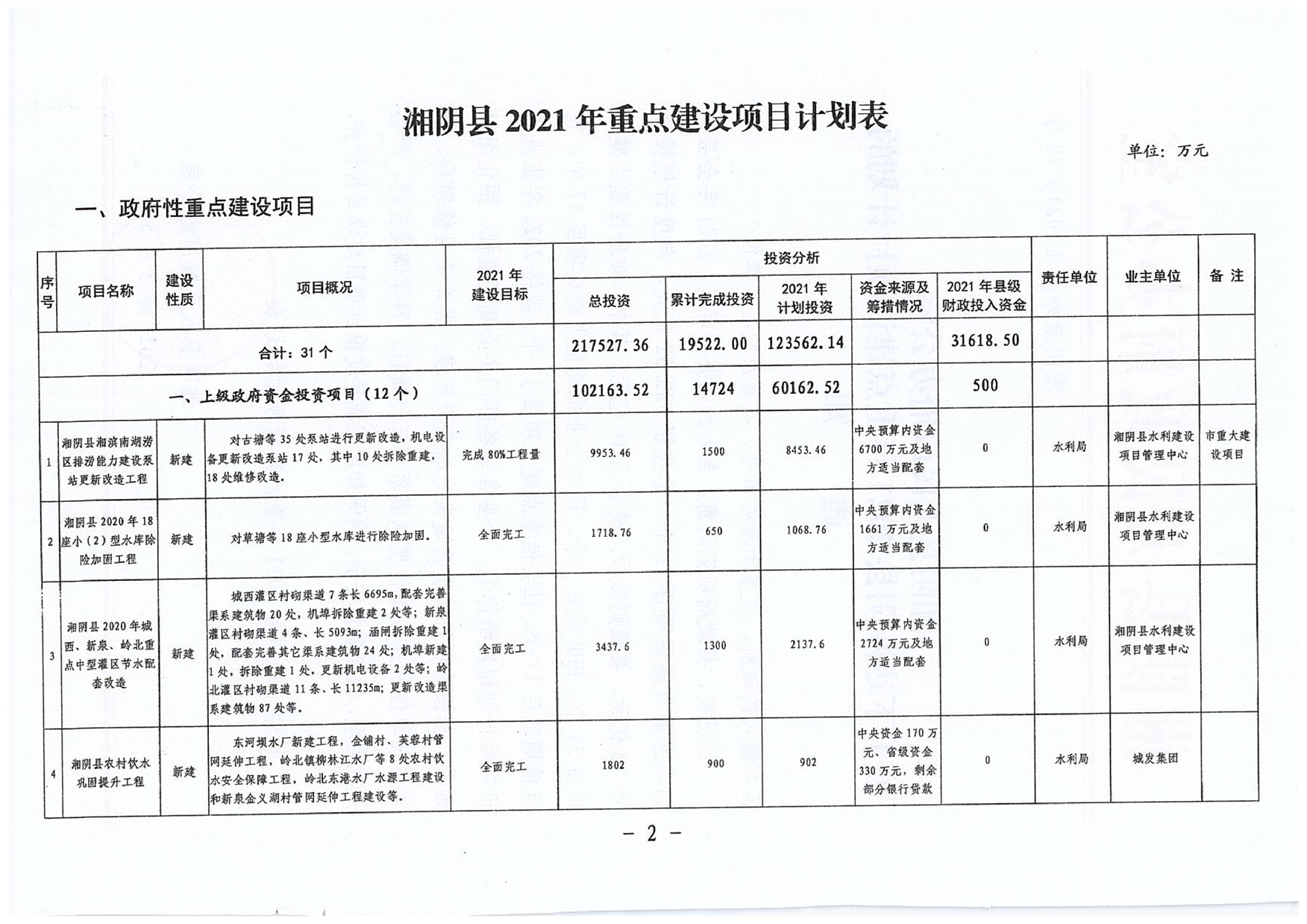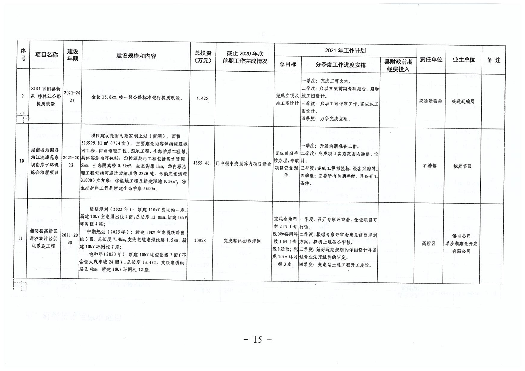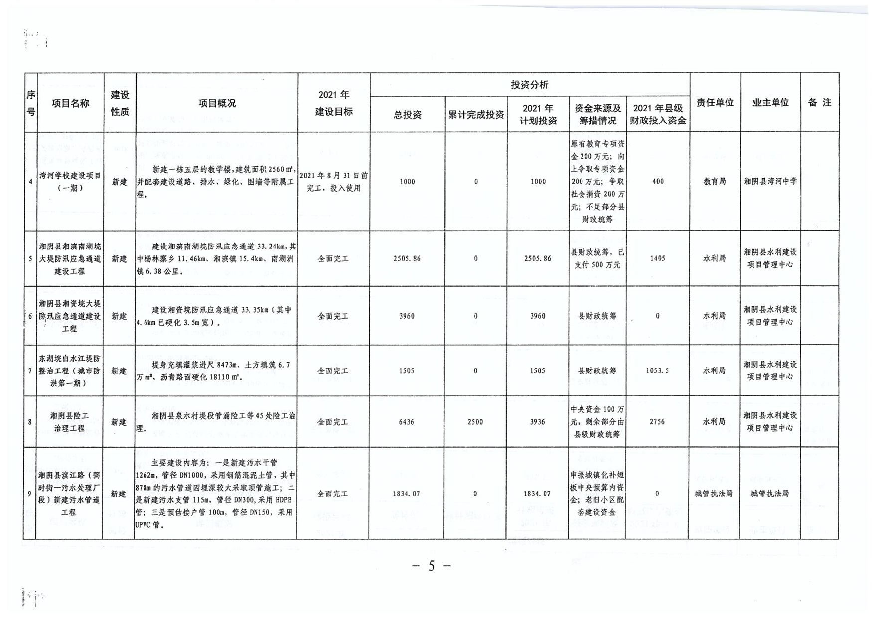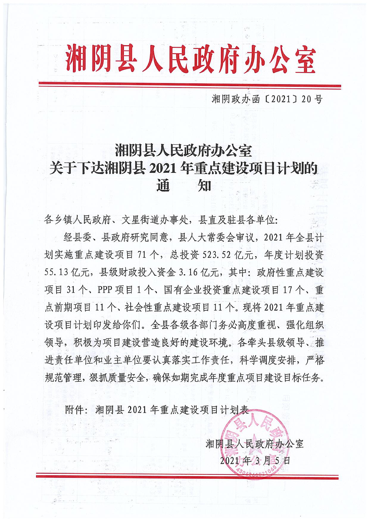 湘阴县人民政府办公室 关于下达湘阴县2021年重点建设项目计划的通知