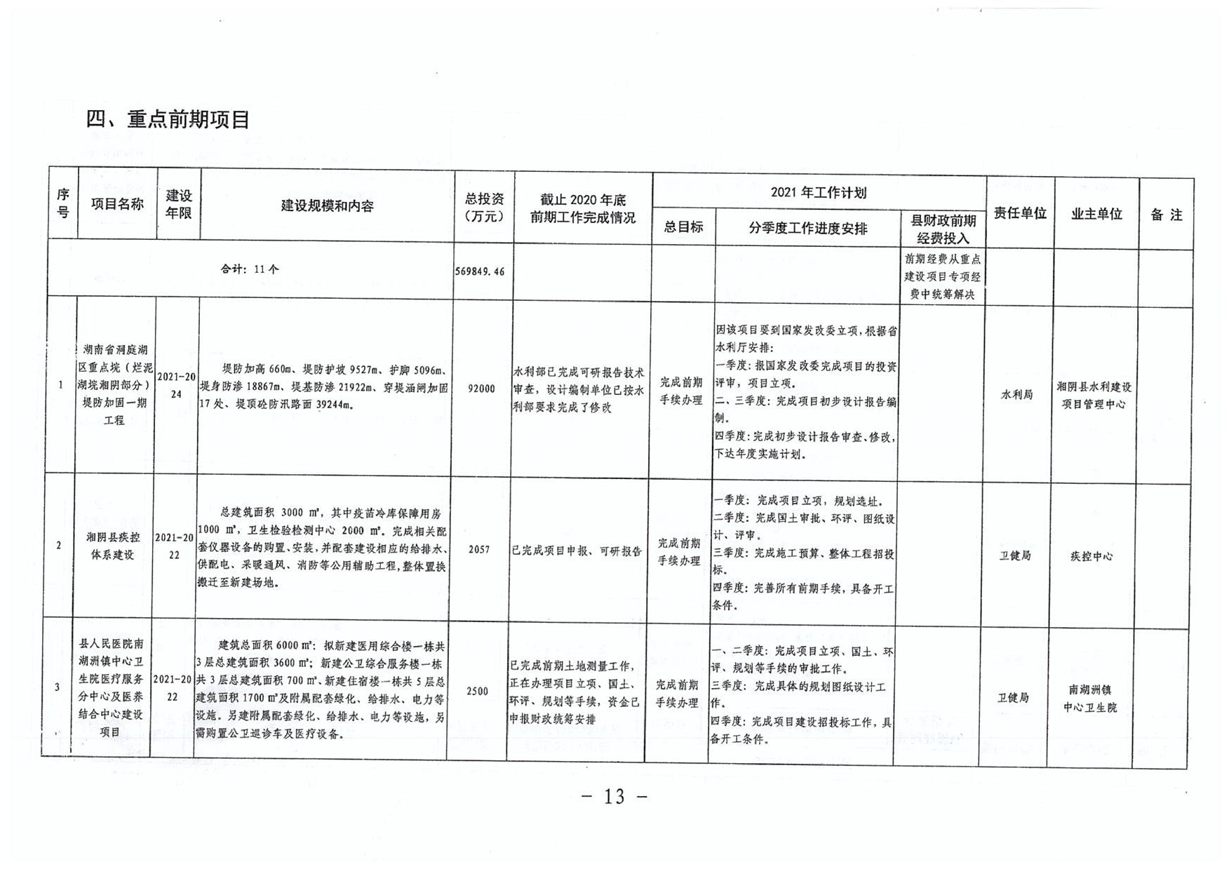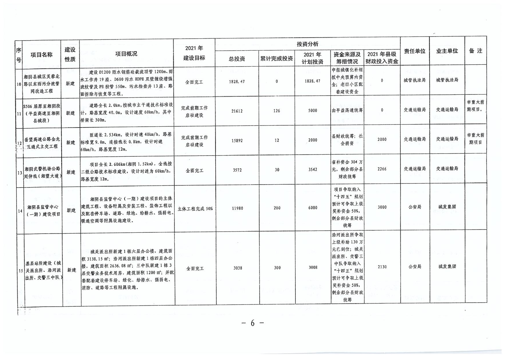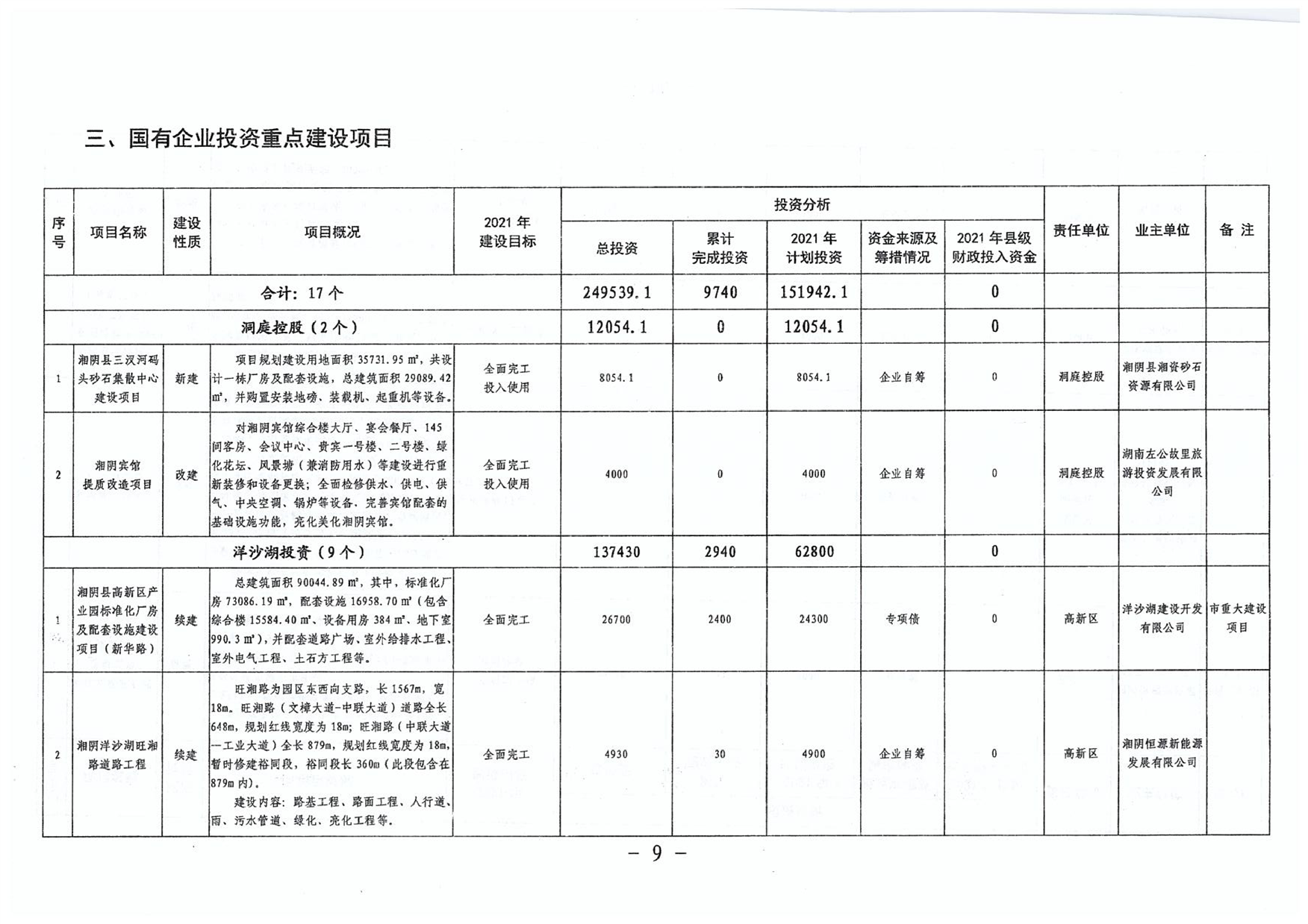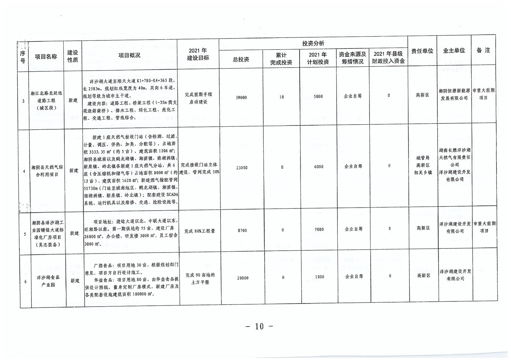 湘阴县人民政府办公室 关于下达湘阴县2021年重点建设项目计划的通知