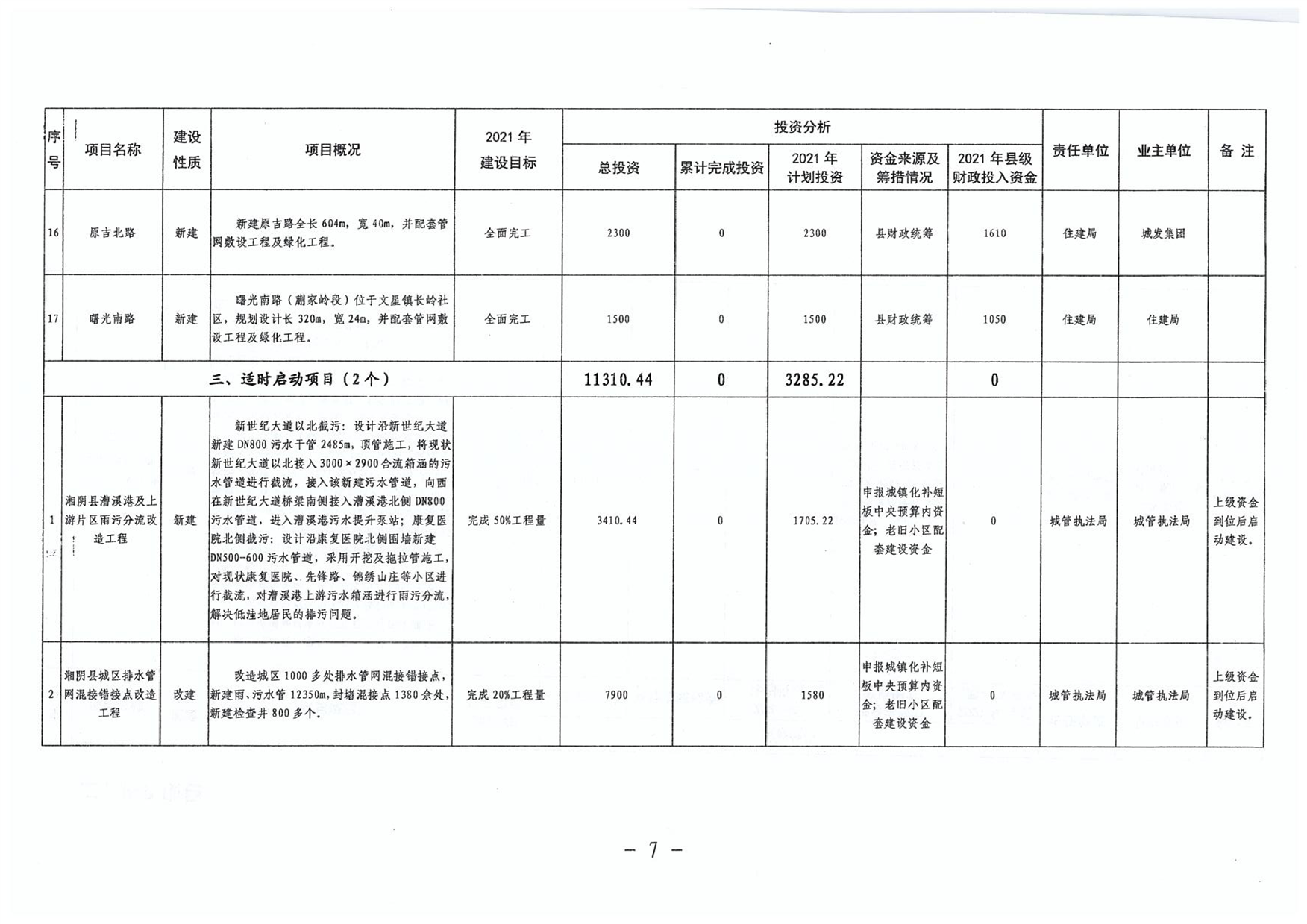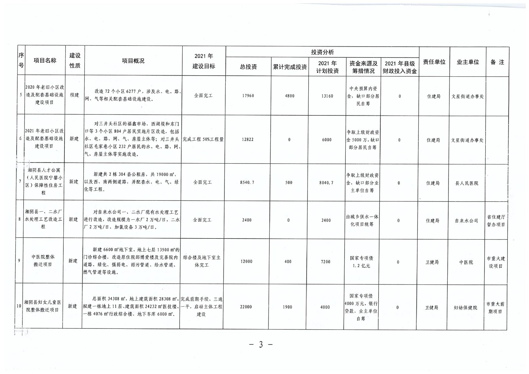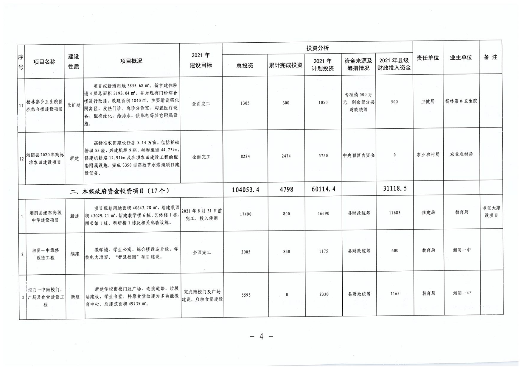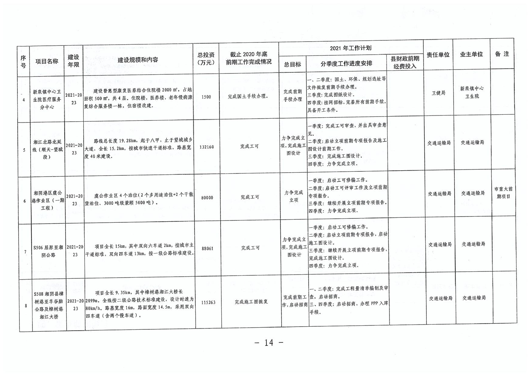 湘阴县人民政府办公室 关于下达湘阴县2021年重点建设项目计划的通知