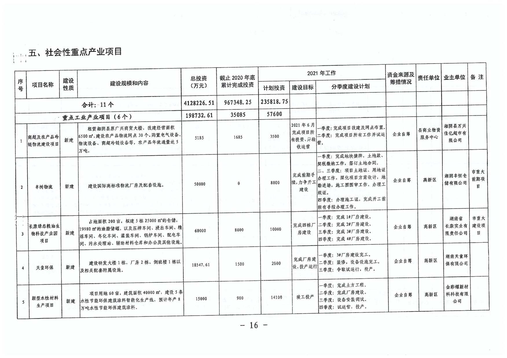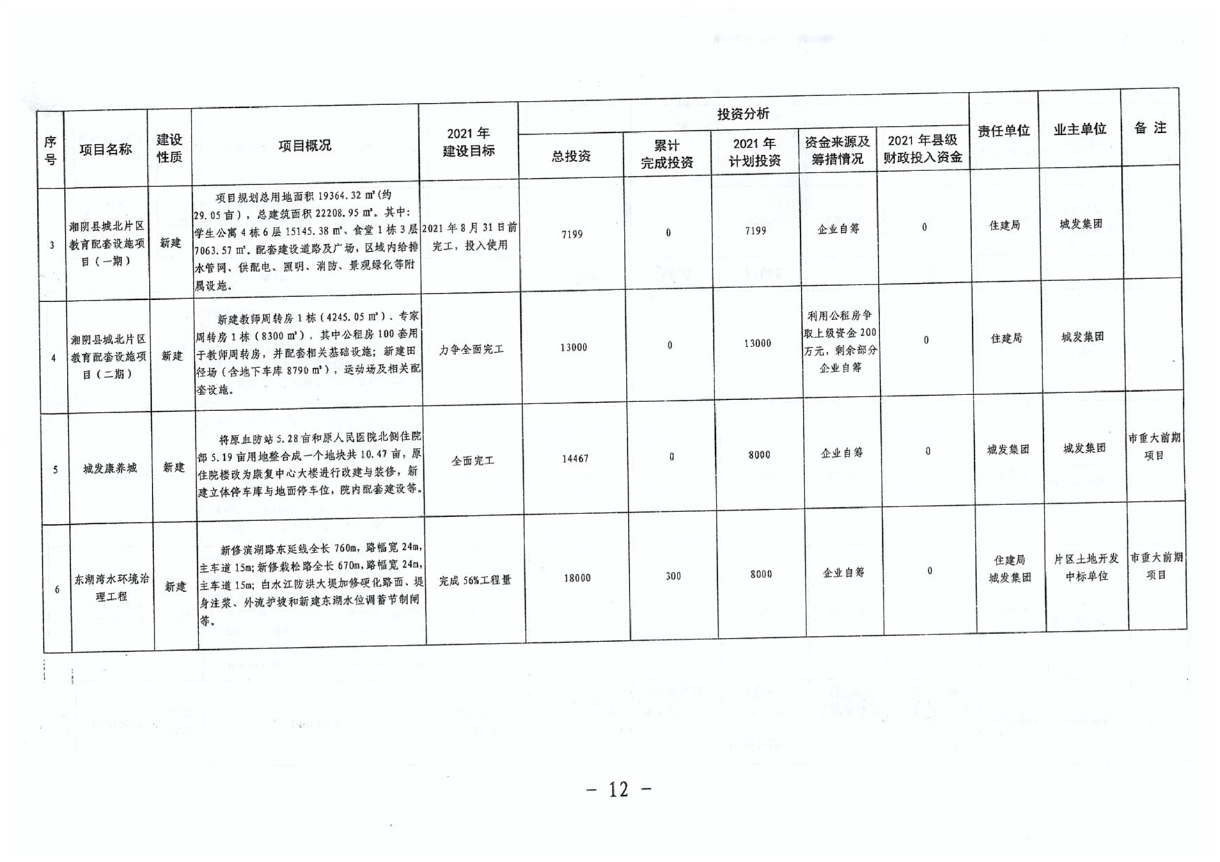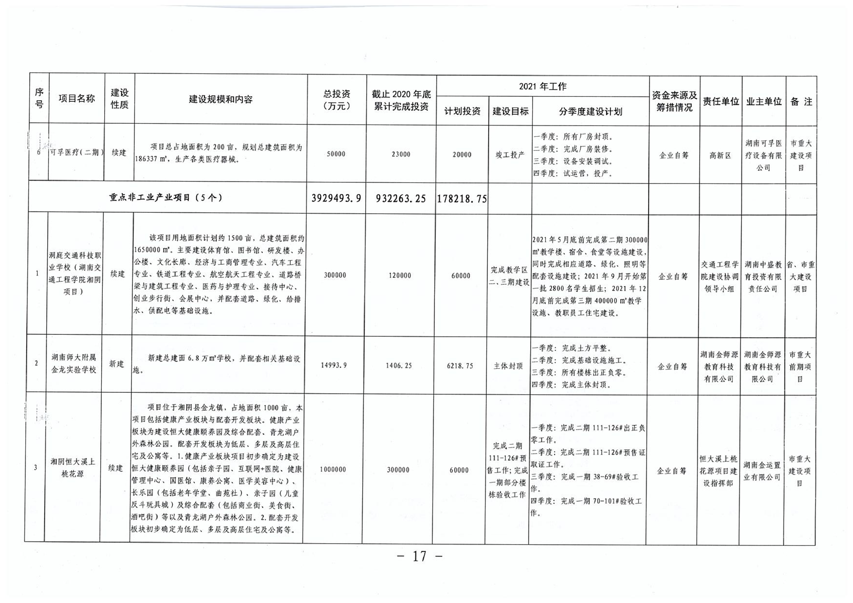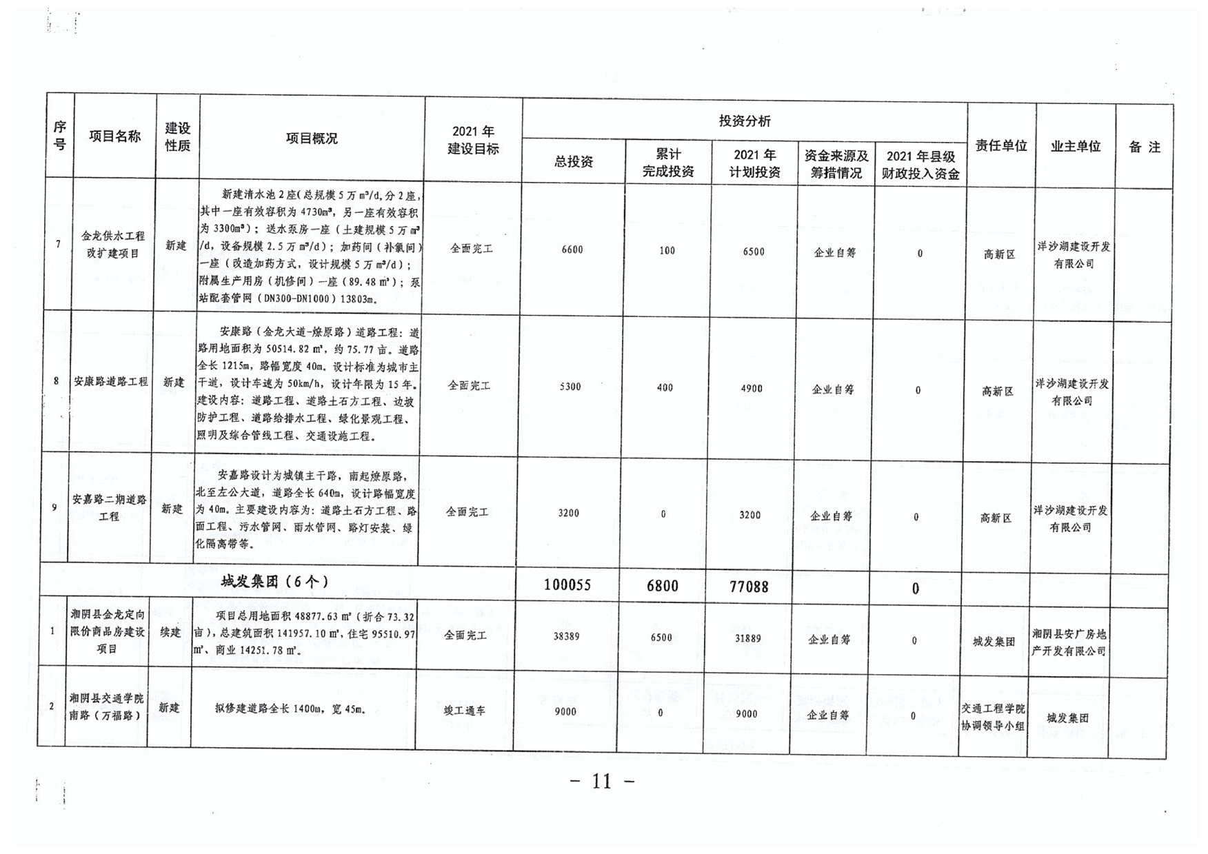 湘阴县人民政府办公室 关于下达湘阴县2021年重点建设项目计划的通知