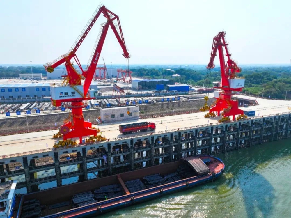 9月28日上午9:30,深圳市联力国际供应链管理有限公司“邦尼5918号”5000吨级船舶靠泊虞公港上游码头,随着第一件沉重的钢材吊装上岸,标志着城陵矶港口集团虞公港码头上游泊位进入投产试运营阶段。虞公港项目一期工程总投资12.48亿元,于2022年12月9日启动建设。今年9月23日,虞公港上游码头2个泊位建设及疏浚工程顺利完成竣工验收,实现常年通航5000吨级、丰水期通航1万吨级。此次上游泊位成功投产试运营,为今年10月正式开港运营奠定了坚实基础,是虞公港项目蓝图变为现实的良好开端。虞公港投产后,为湖南打造“一枢纽、多重点、广延伸”港口体系增添了新动力,将有效提升湖南省水运物流效率,降低企业物流运输成本,为长株潭城市应急保供提供坚实保障。后续将进一步完善港口设施和服务功能,提升港口运营效率和服务质量,努力将虞公港码头打造成为融入国内国际双循环的重要节点。