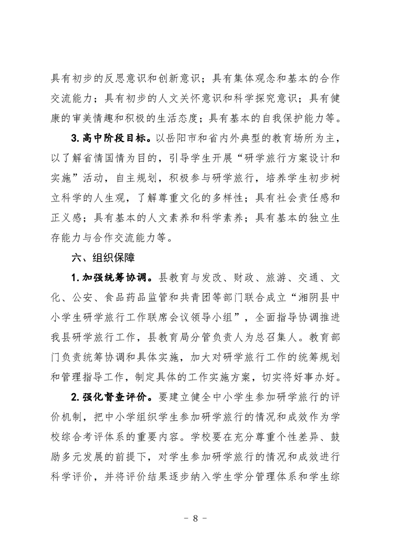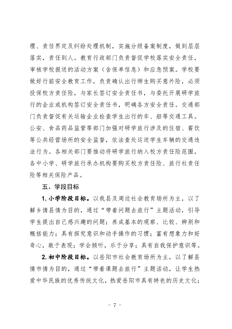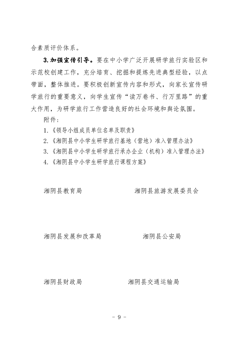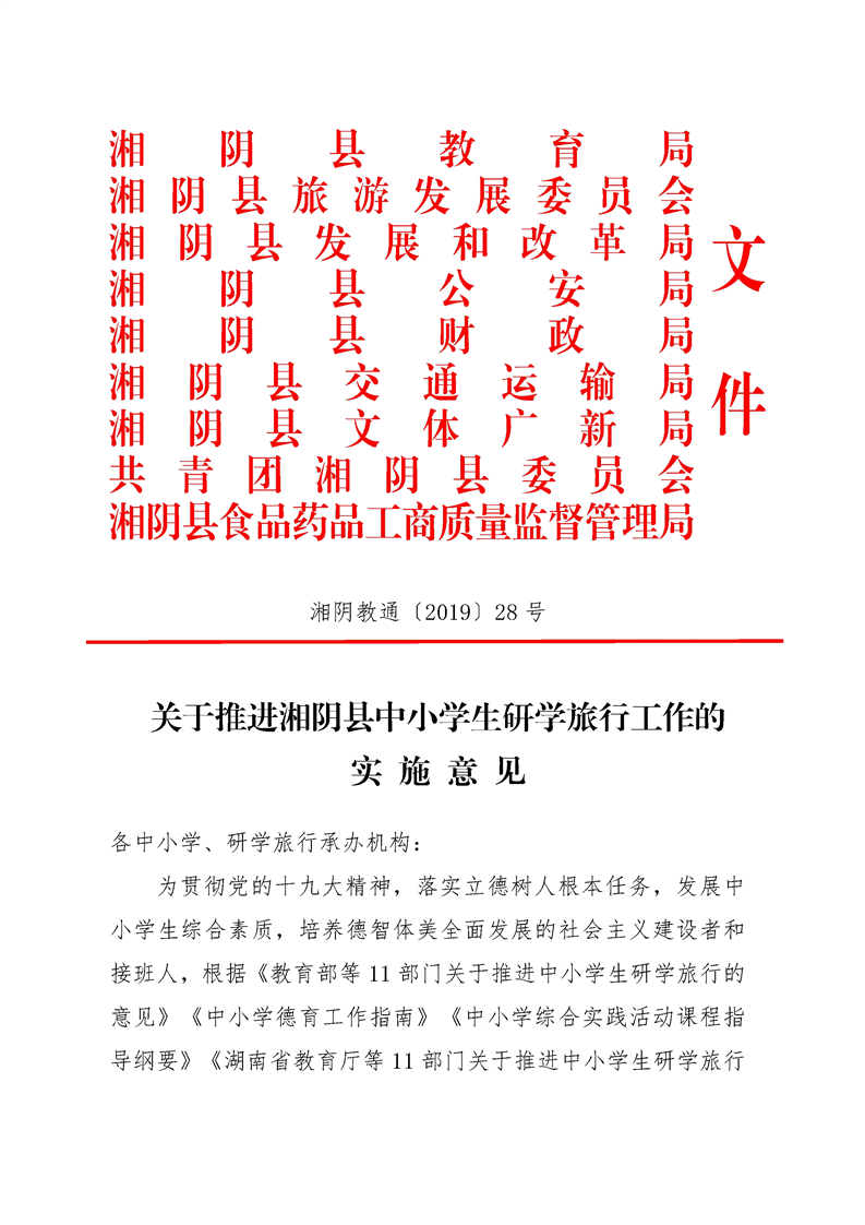 关于推进湘阴县中小学生研学旅行工作的实施意见