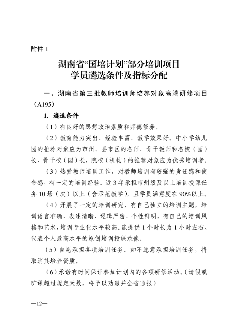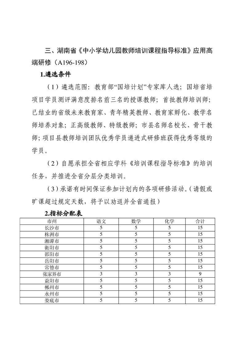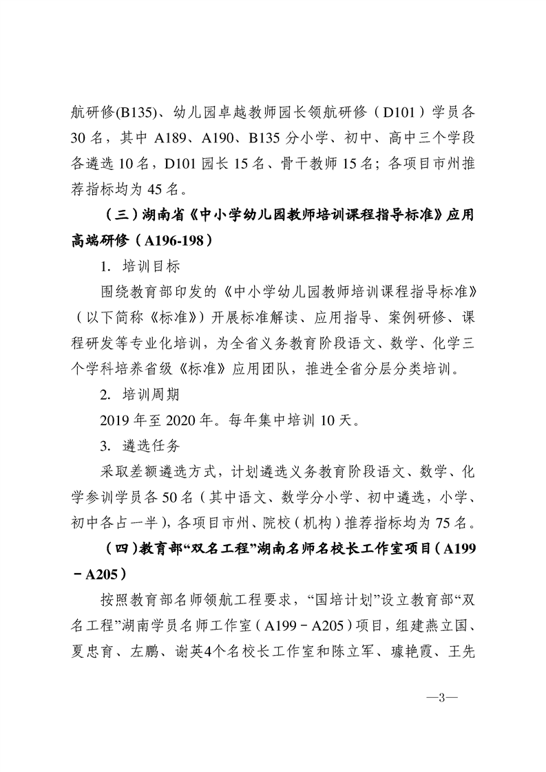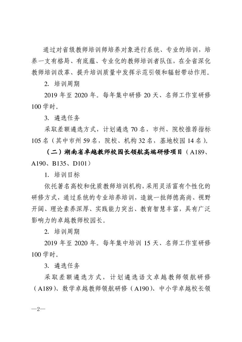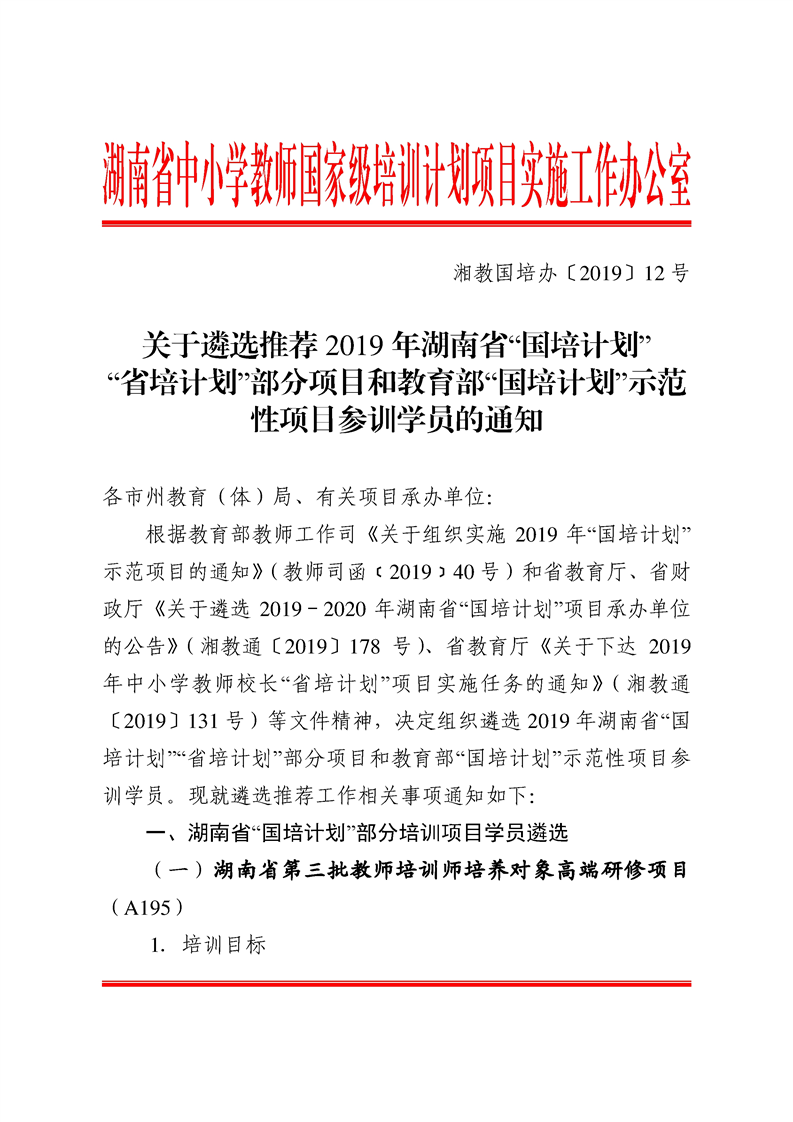 关于遴选推荐2019年湖南省“国培计划”“省培计划”部分项目和教育部“国培计划”示范性参训学员的通知