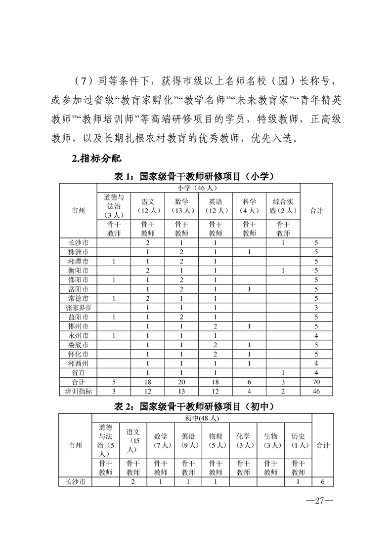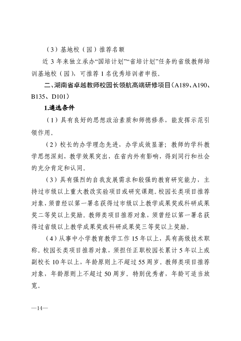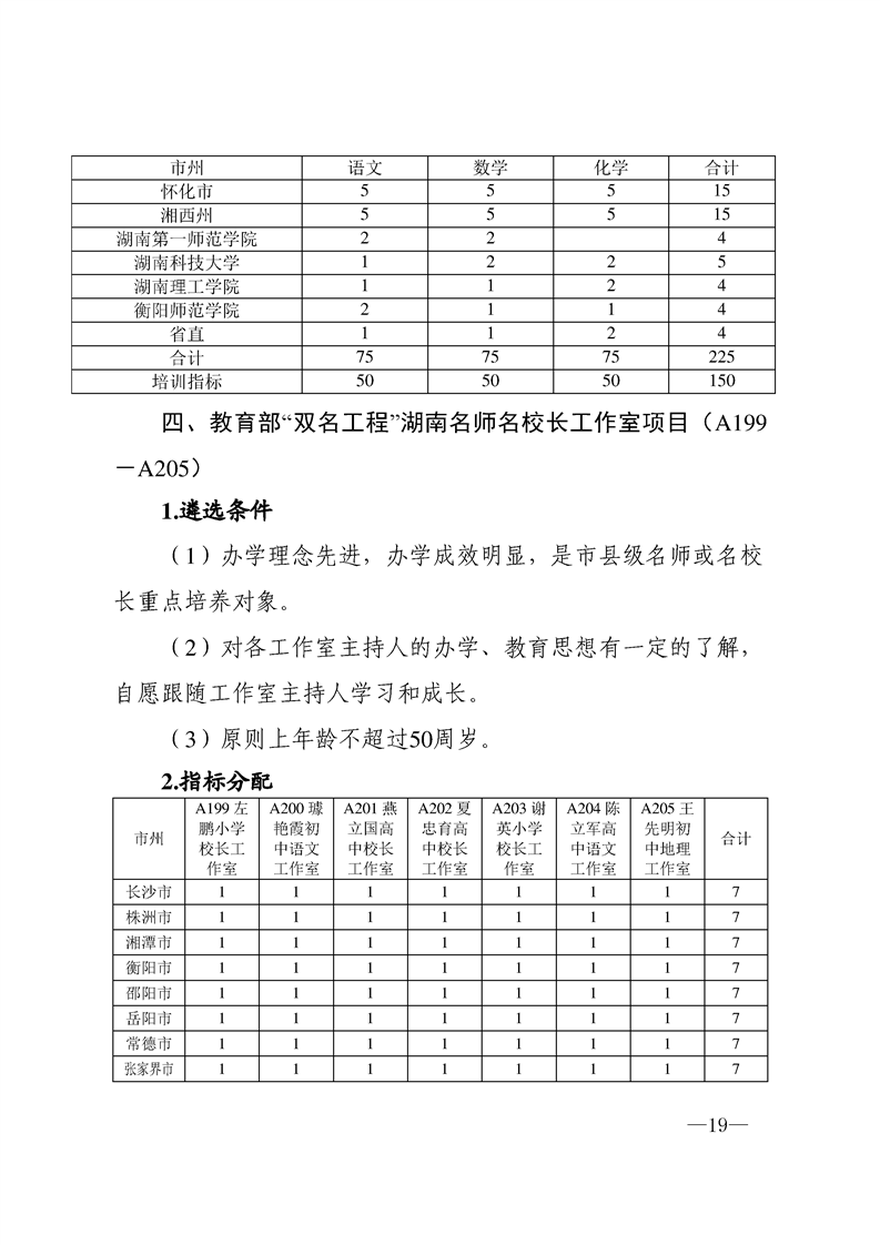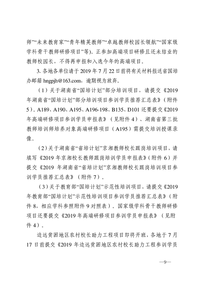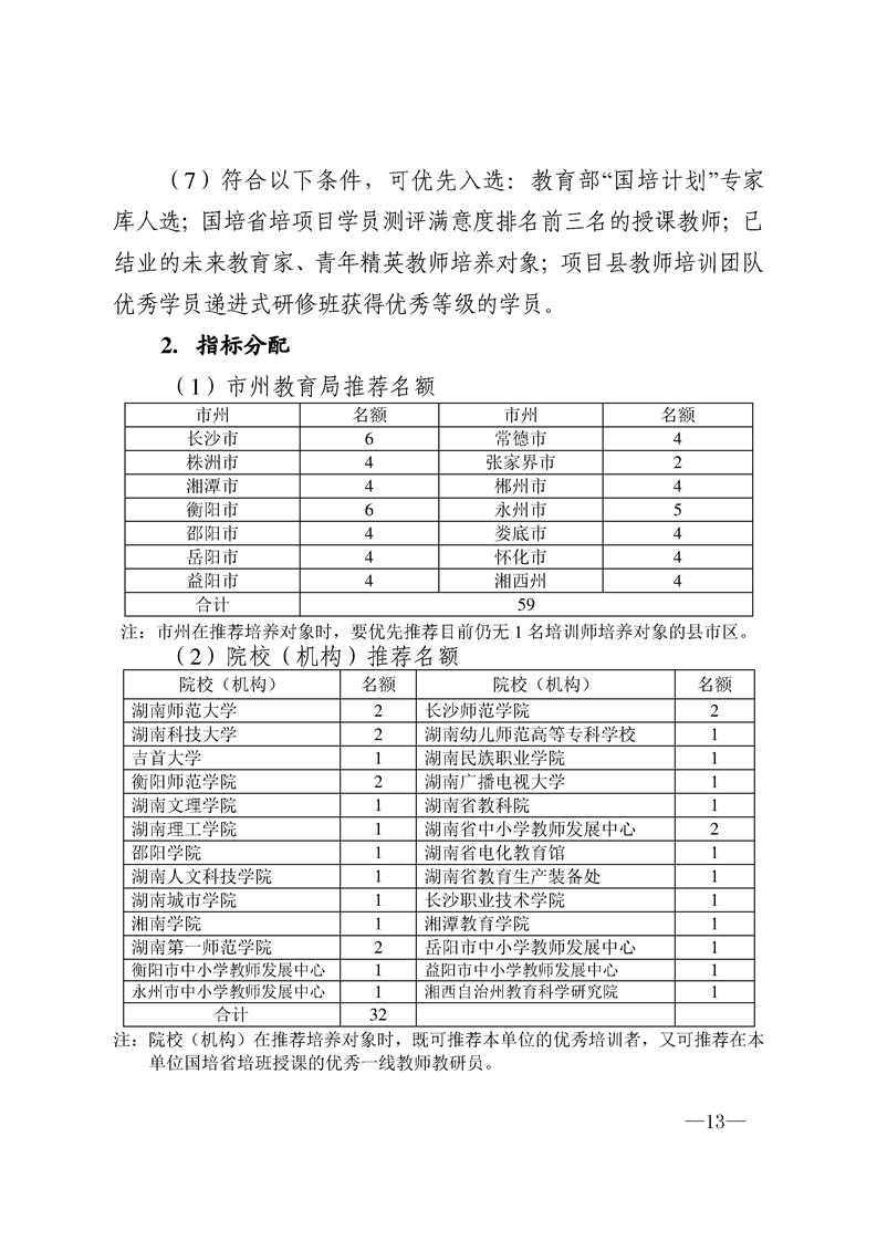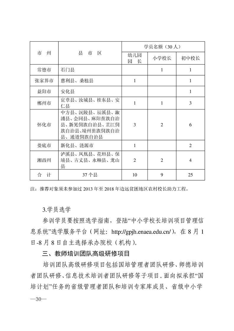 关于遴选推荐2019年湖南省“国培计划”“省培计划”部分项目和教育部“国培计划”示范性参训学员的通知