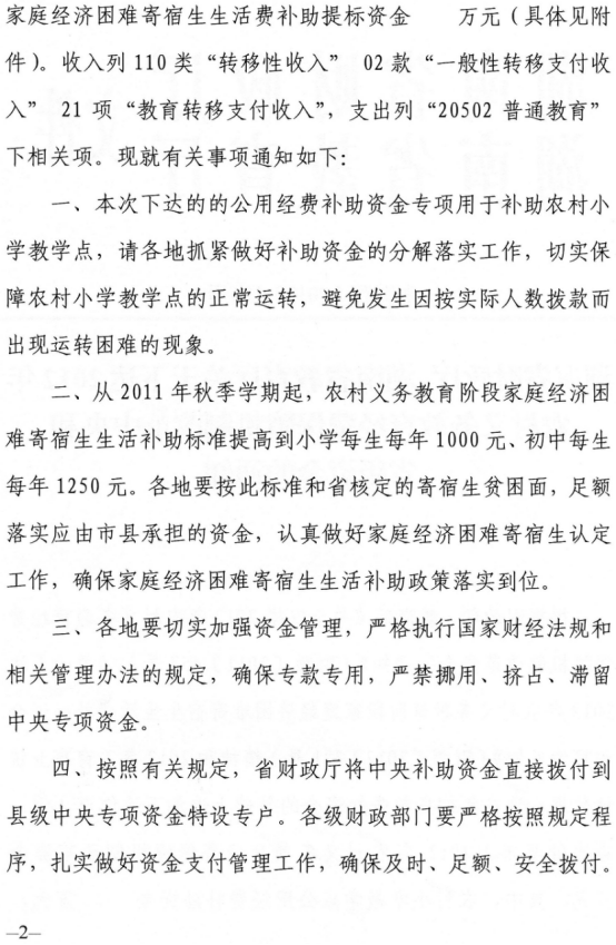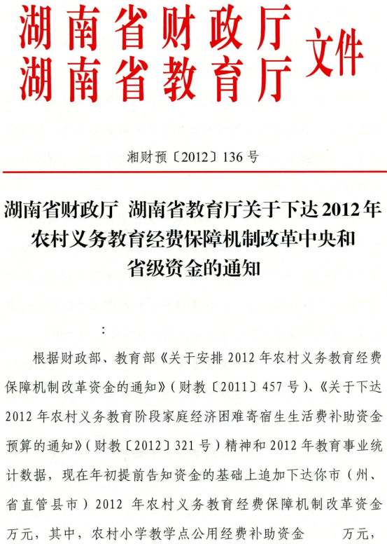 2012年农村义务教育经费保障机制改革中央和省级资金