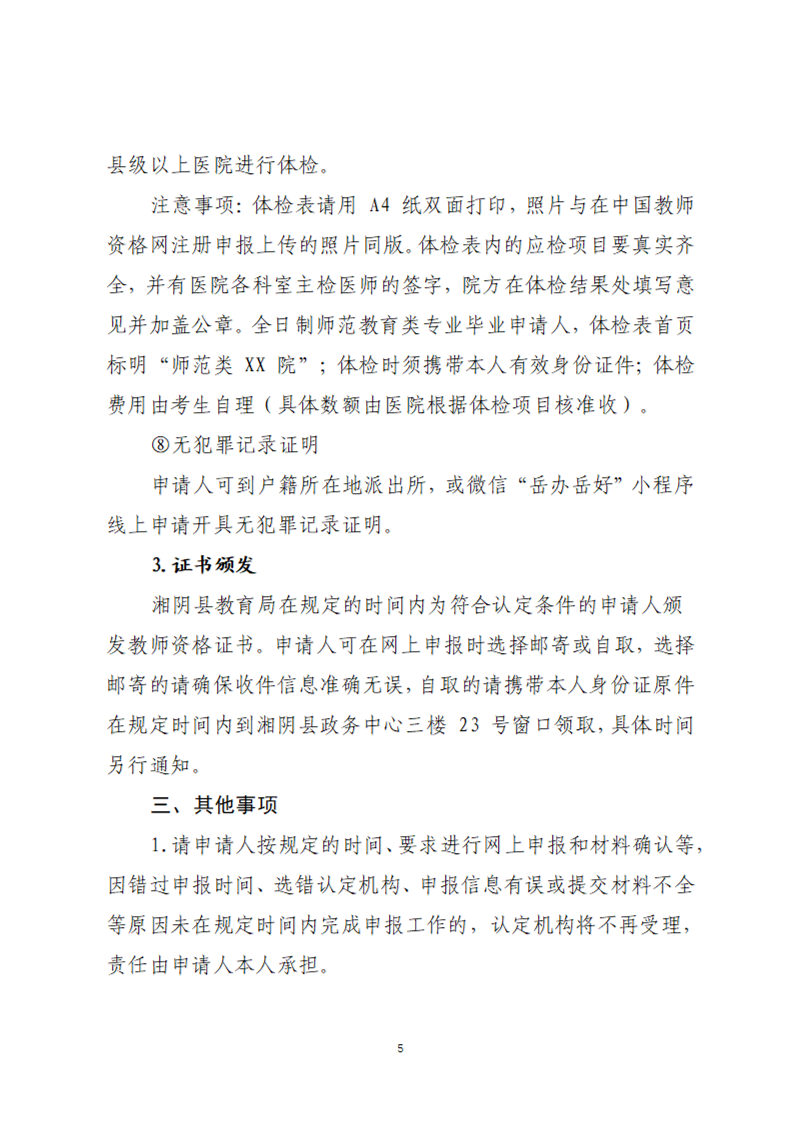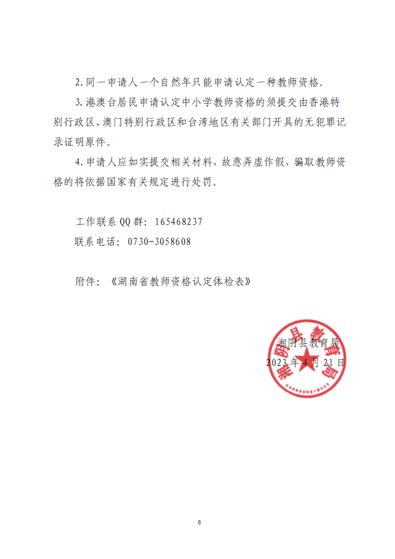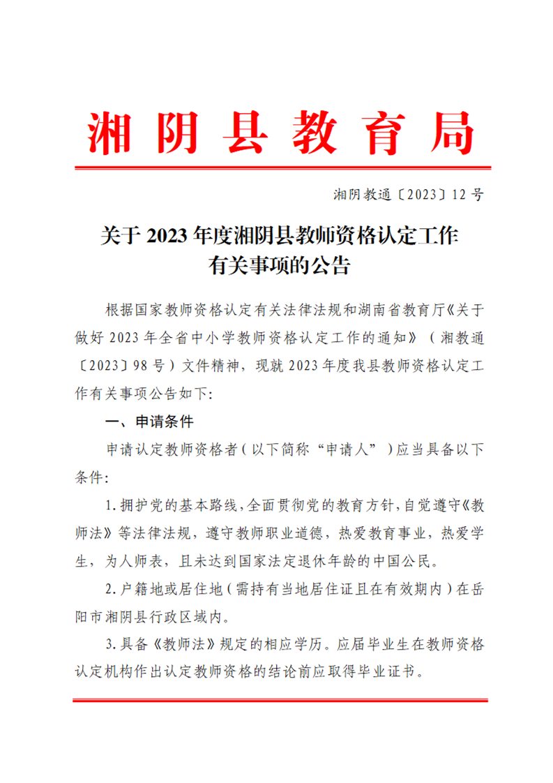关于2023年度湘阴县教师资格认定工作有关事项的公告