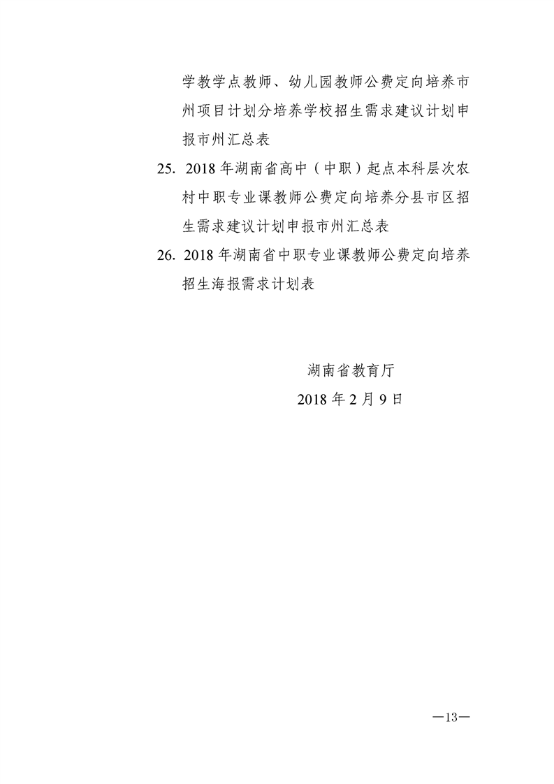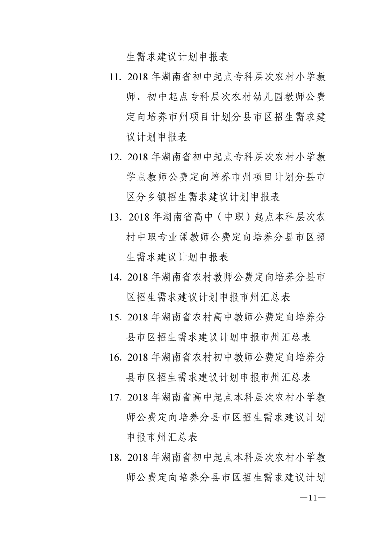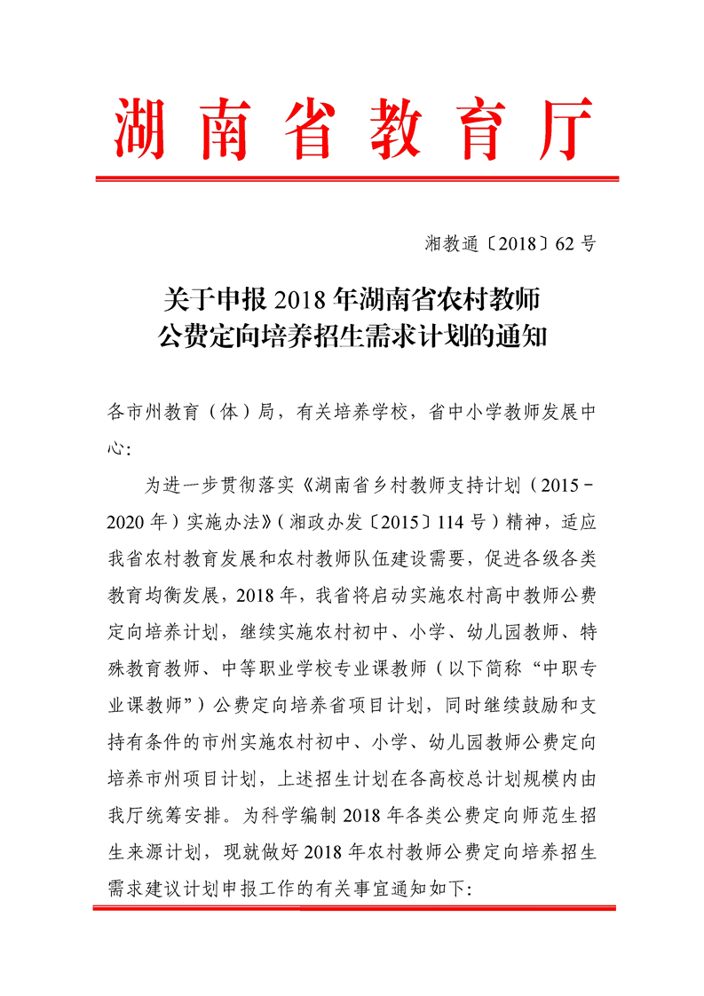 关于申报2018年湖南省农村教师公费定向培养招生需求计划的通知