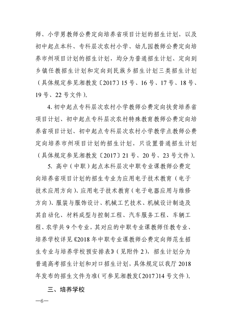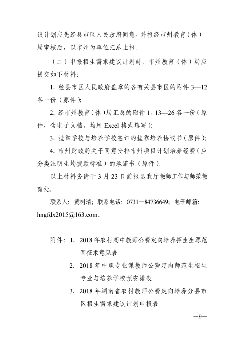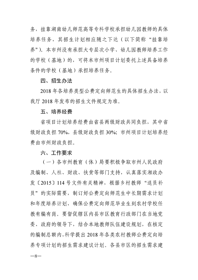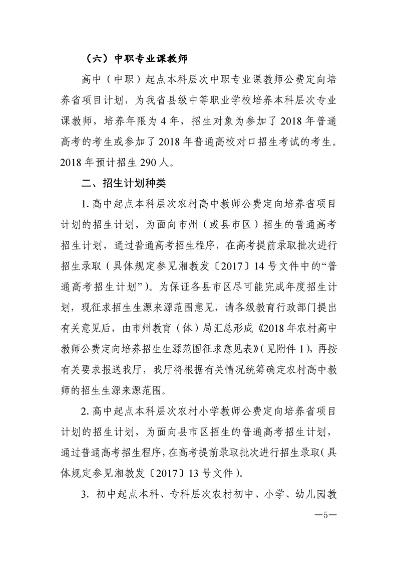 关于申报2018年湖南省农村教师公费定向培养招生需求计划的通知