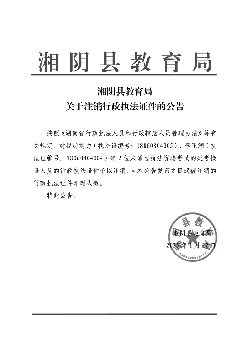 关于注销行政执法证件的公告