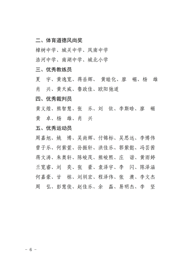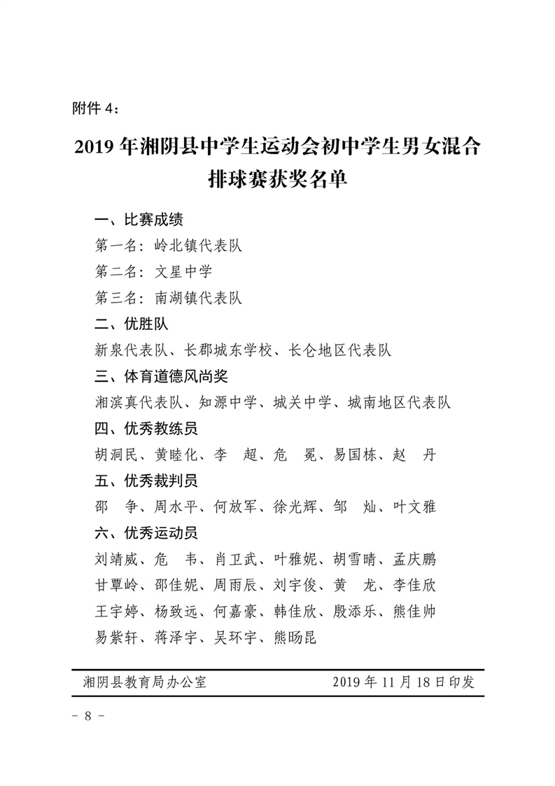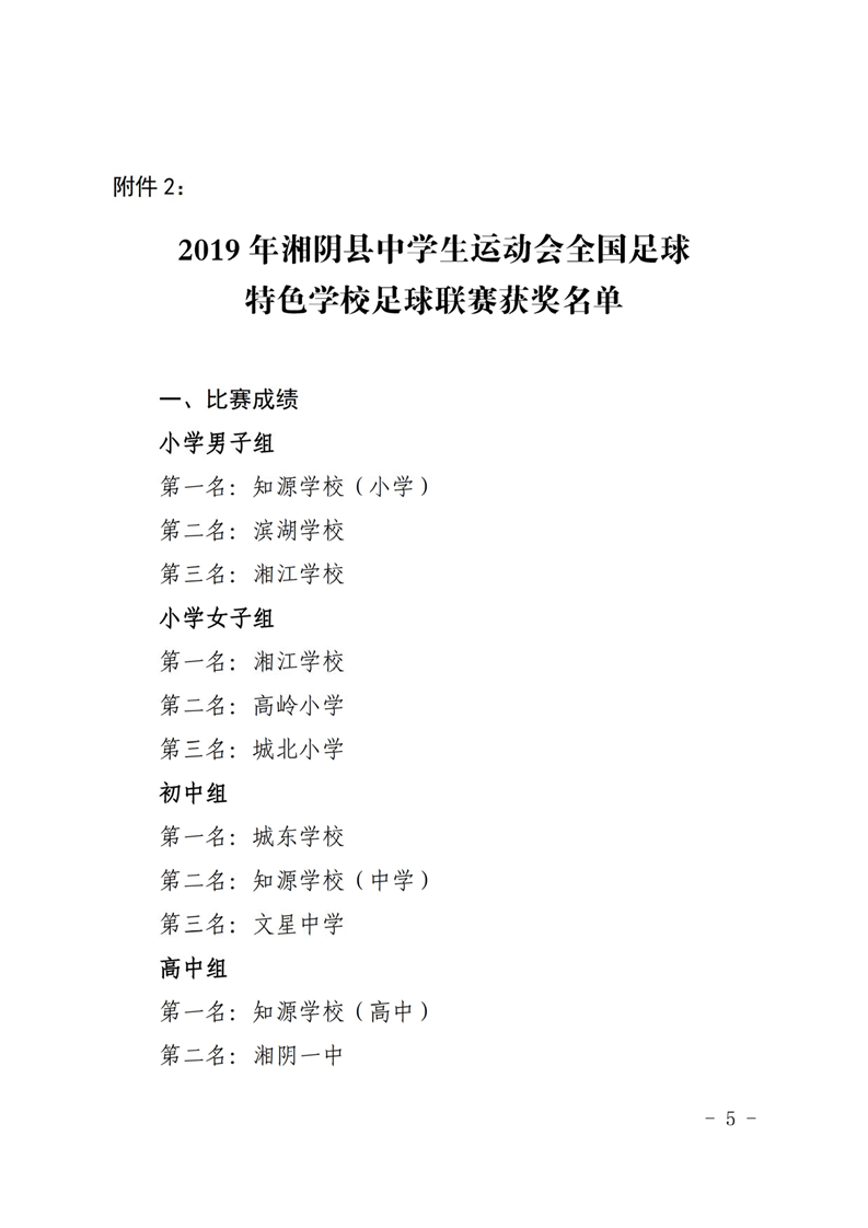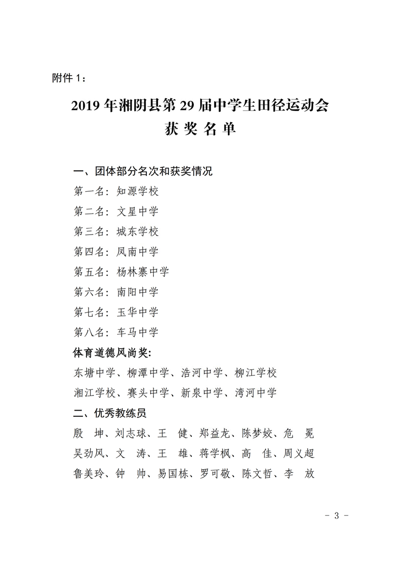 2019年湘阴县中学生运动会比赛结果