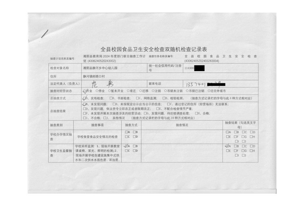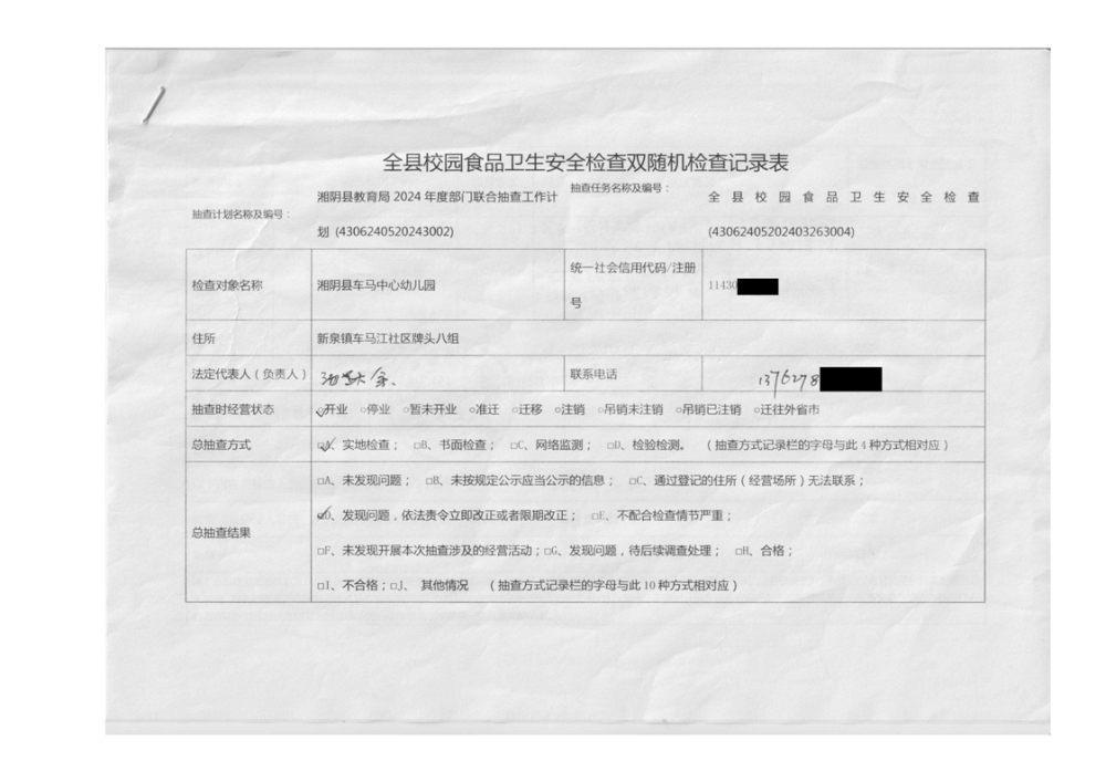 关于开展2024年度县级部门联合“双随机、一公开”检查结果的公示