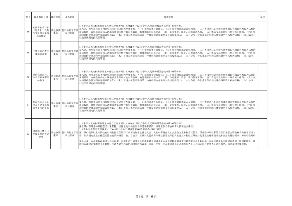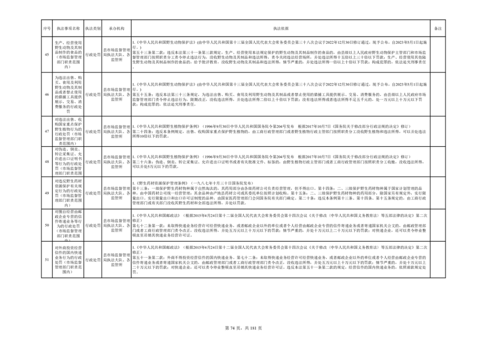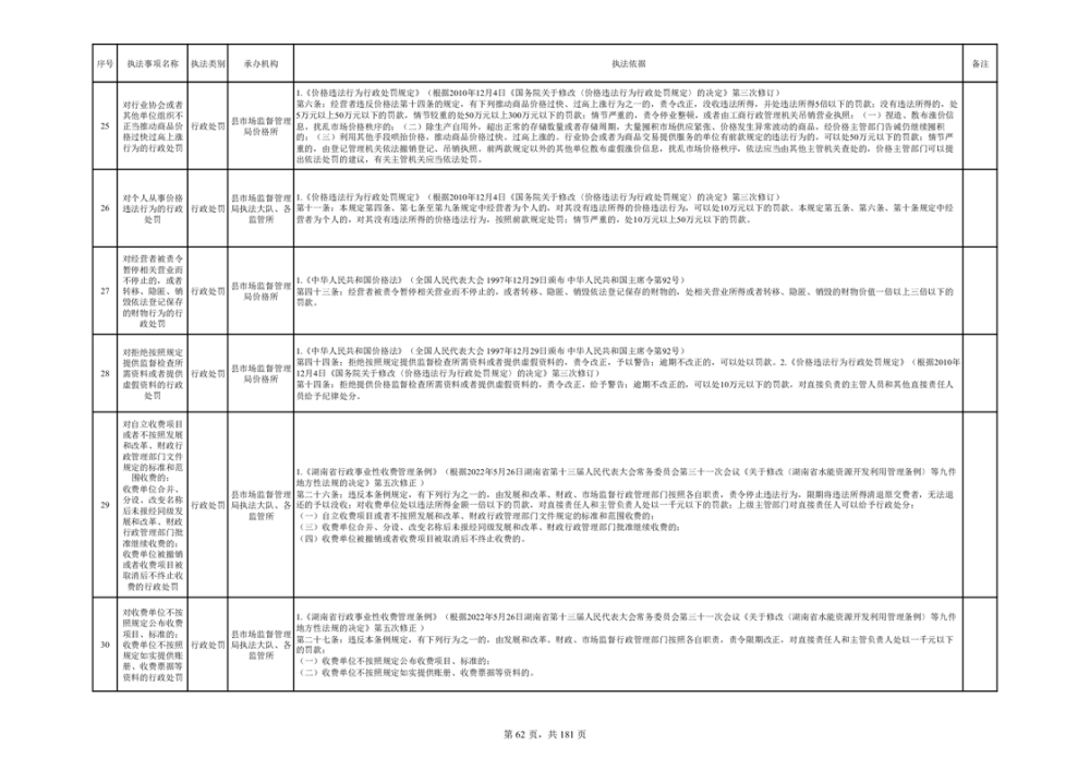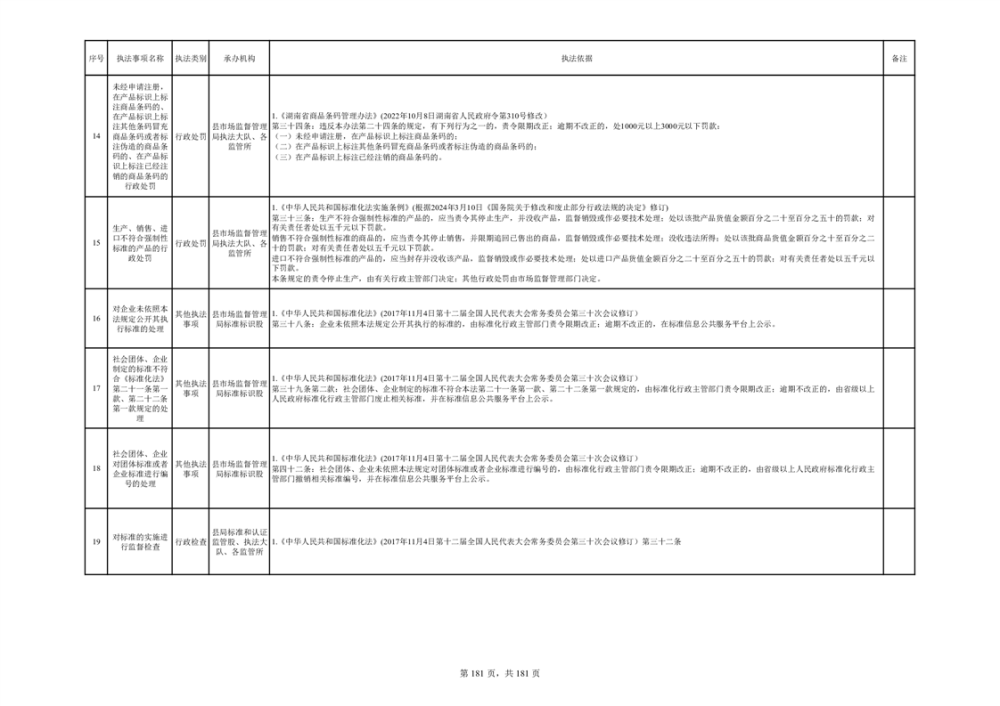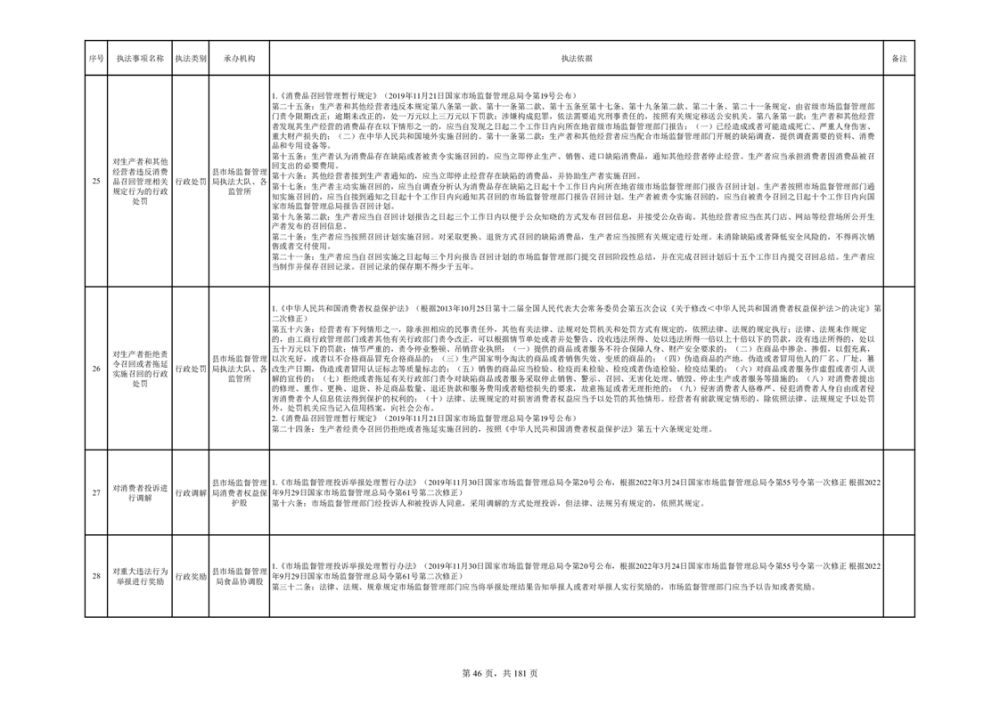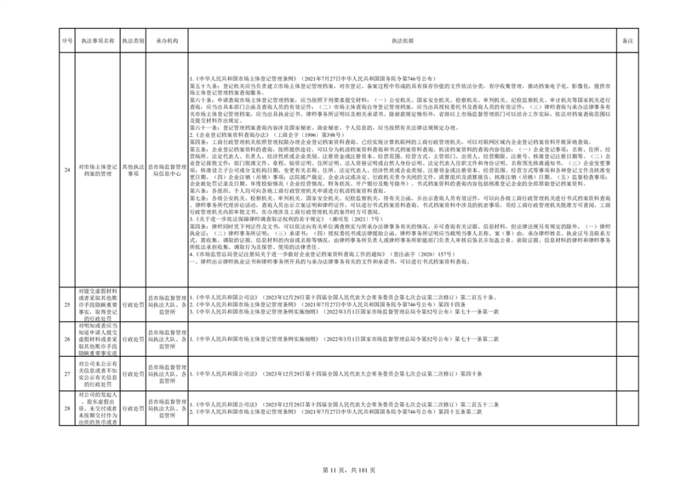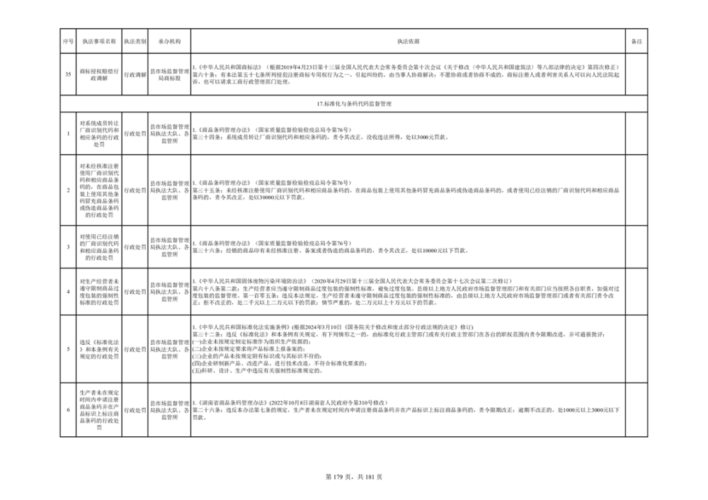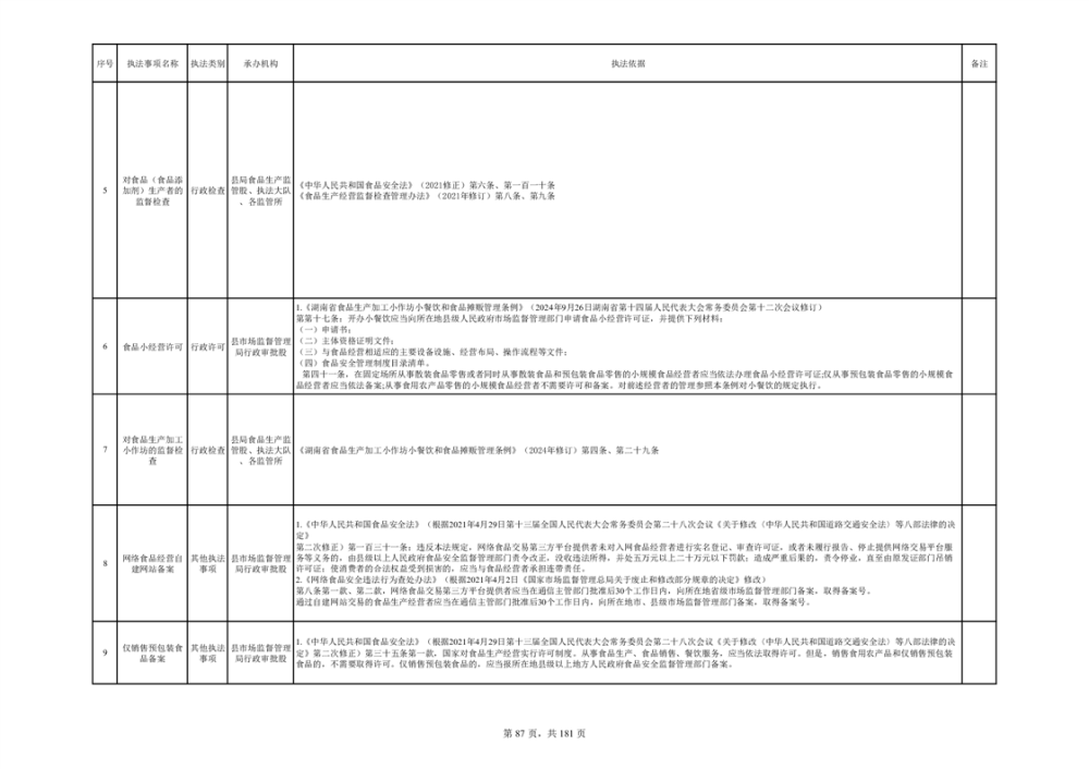 湘阴县市场监督管理局行政执法事项目录