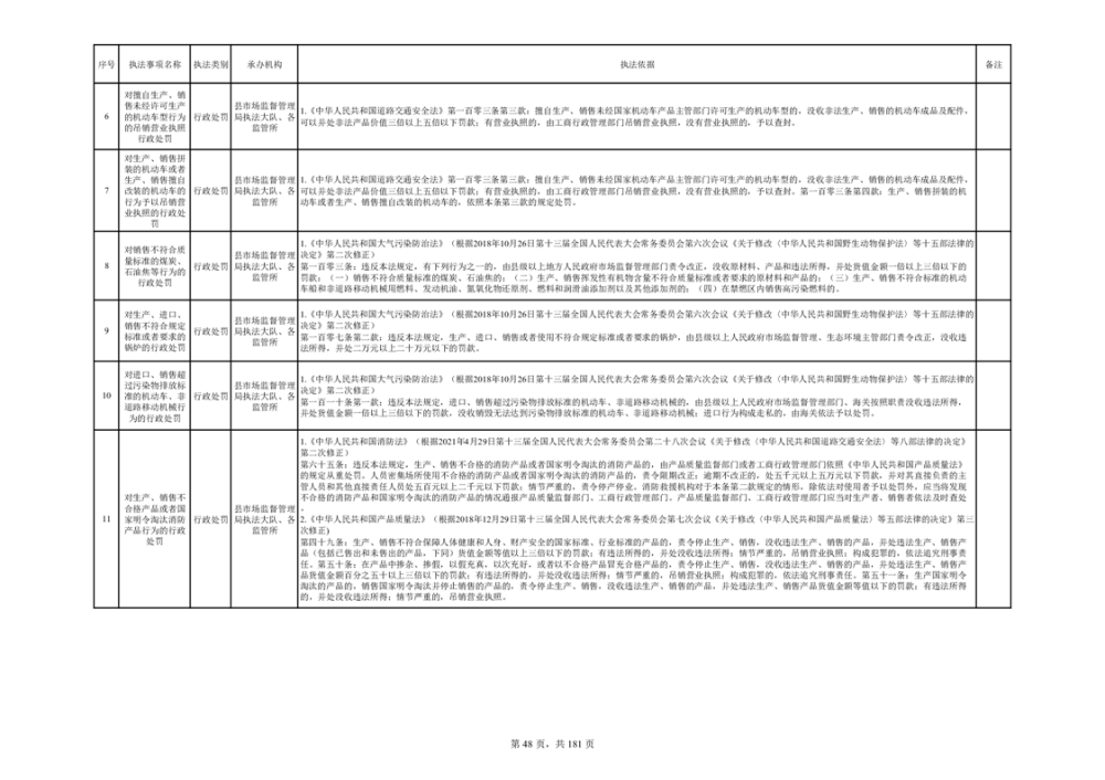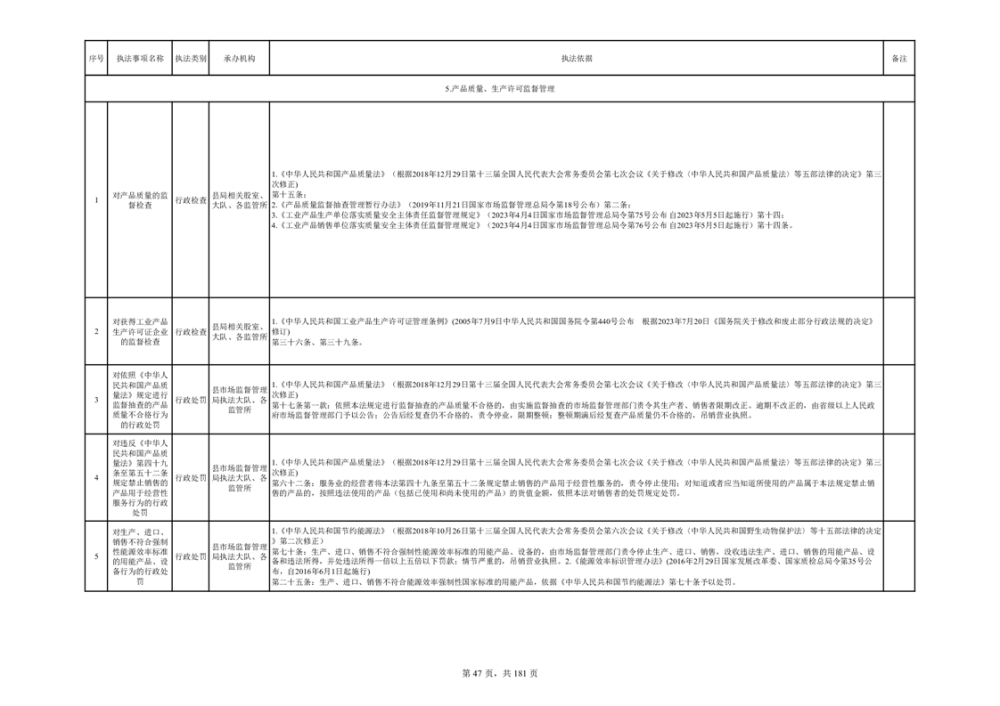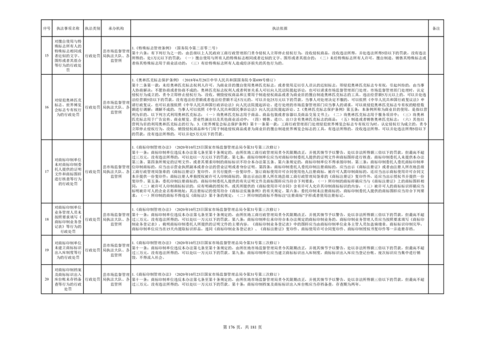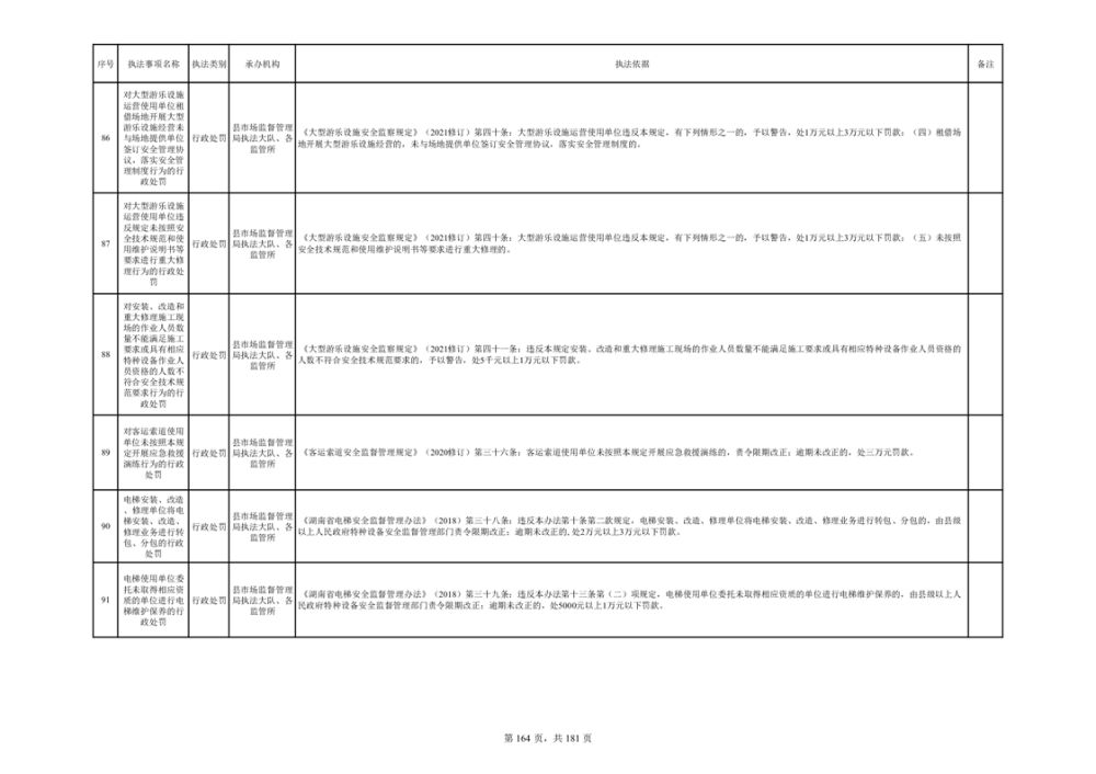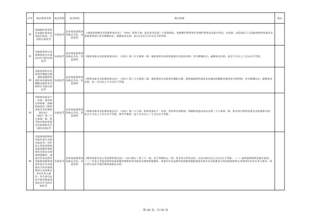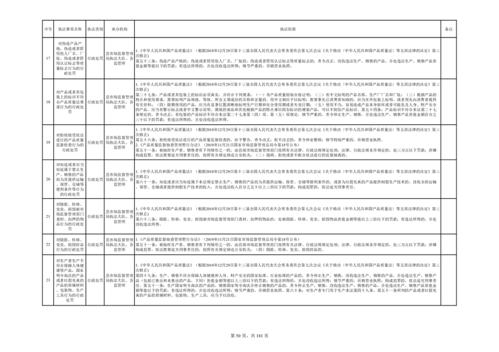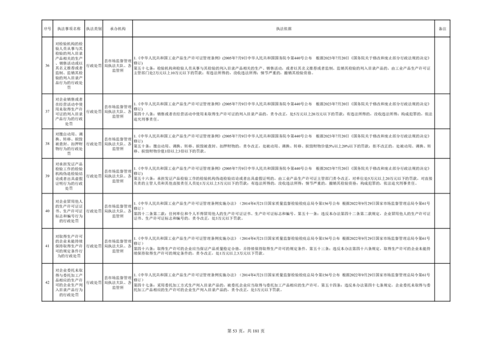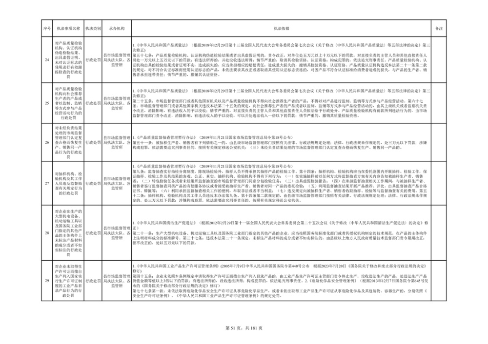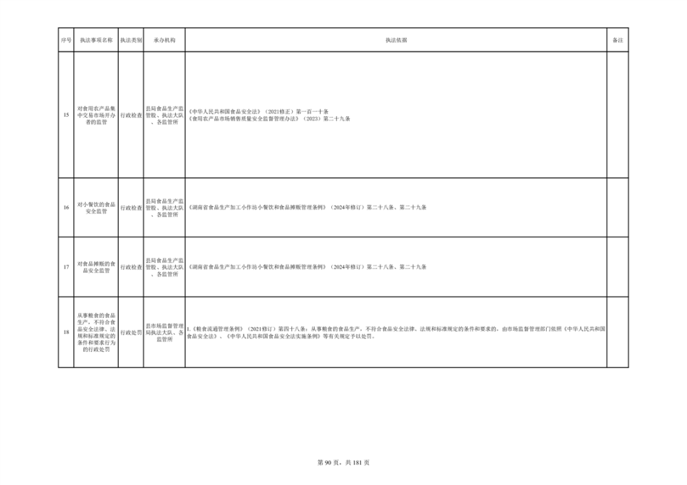 湘阴县市场监督管理局行政执法事项目录