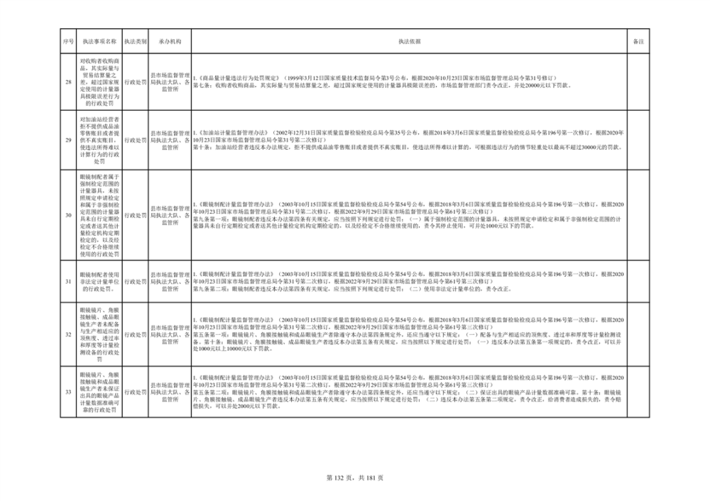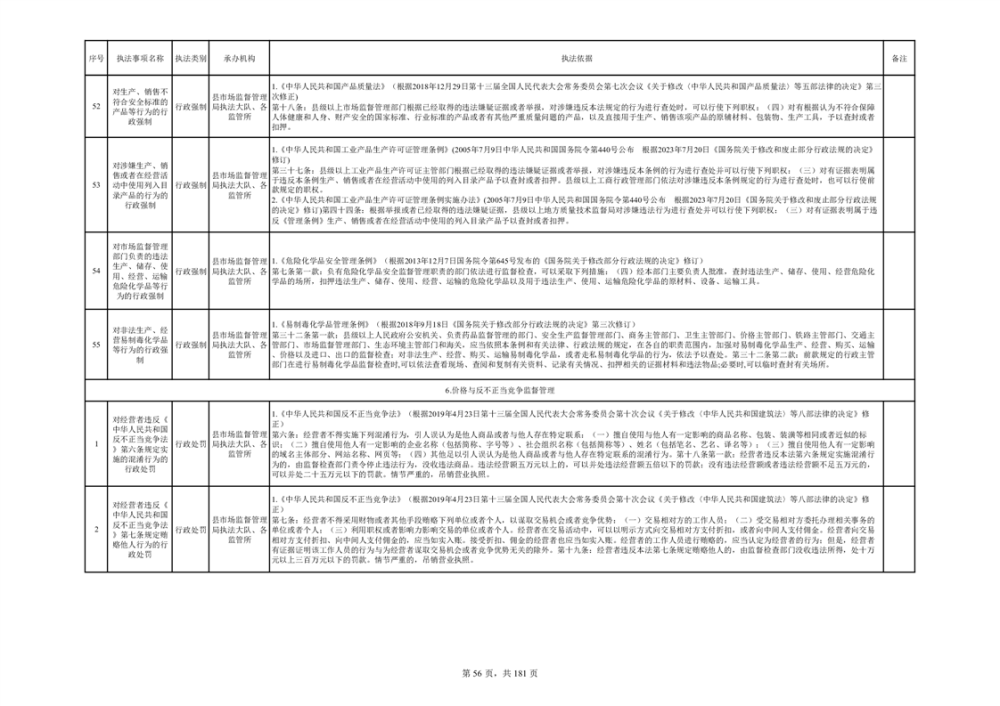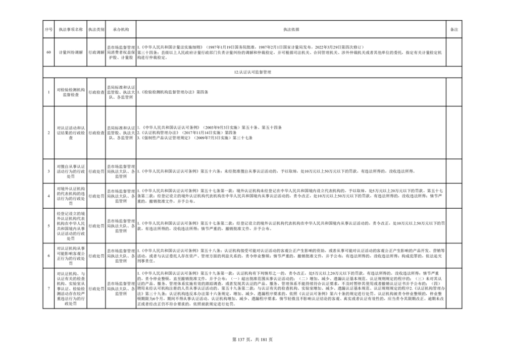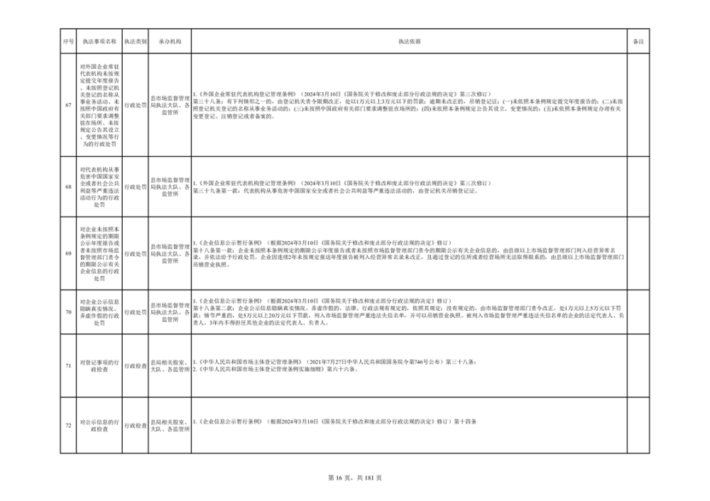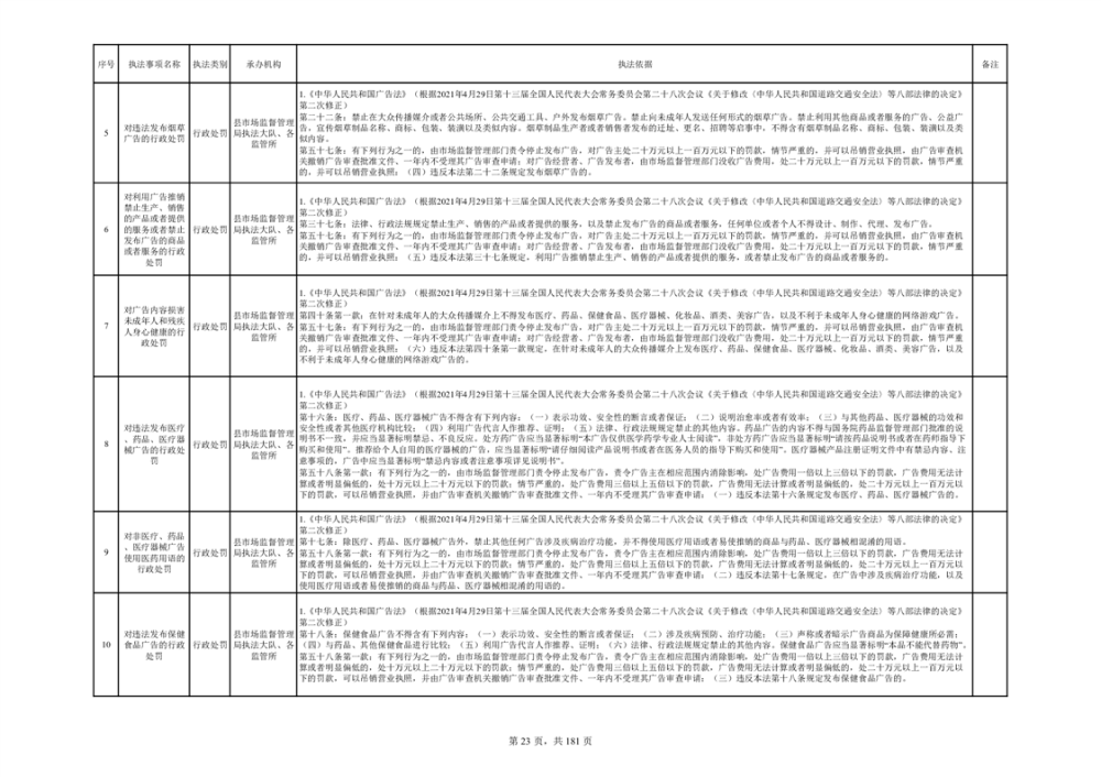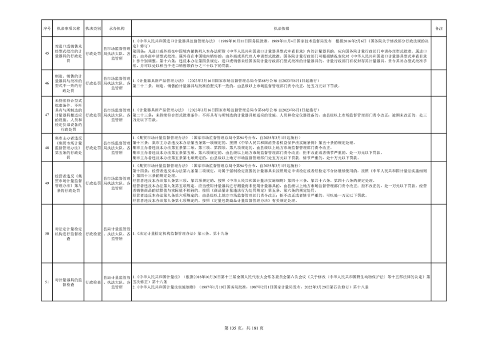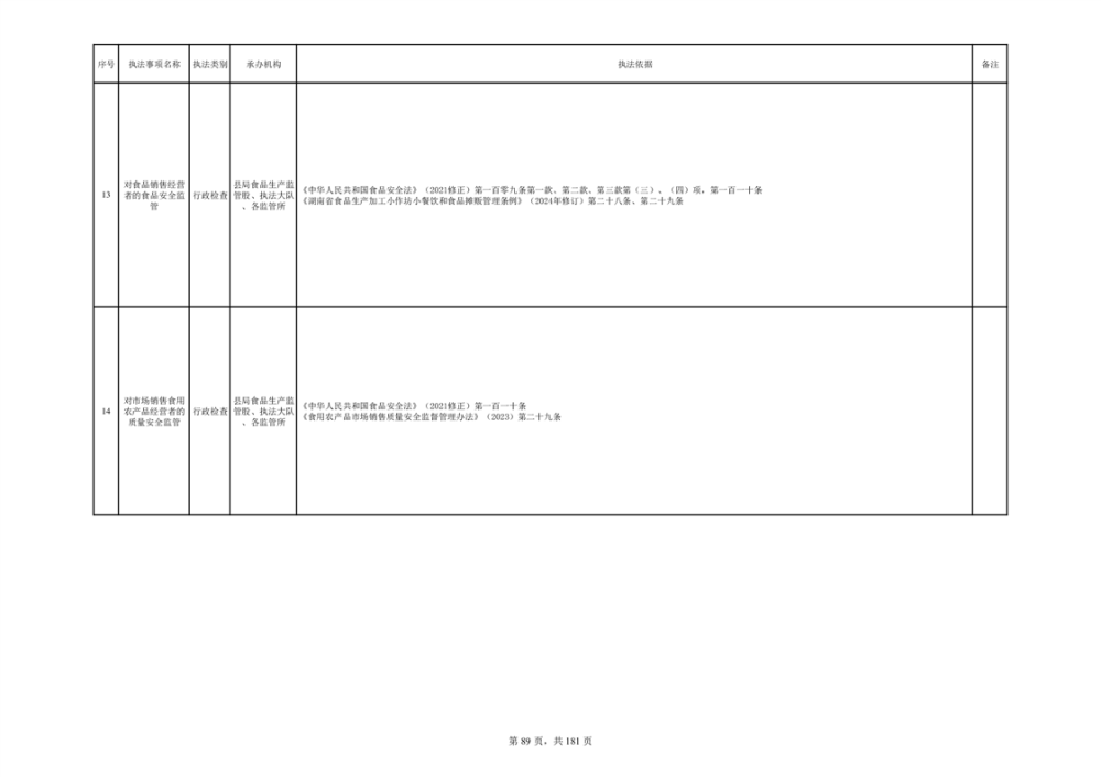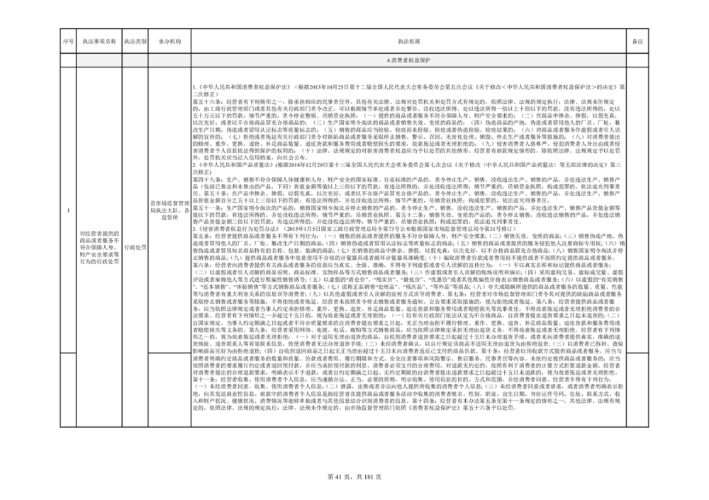 湘阴县市场监督管理局行政执法事项目录